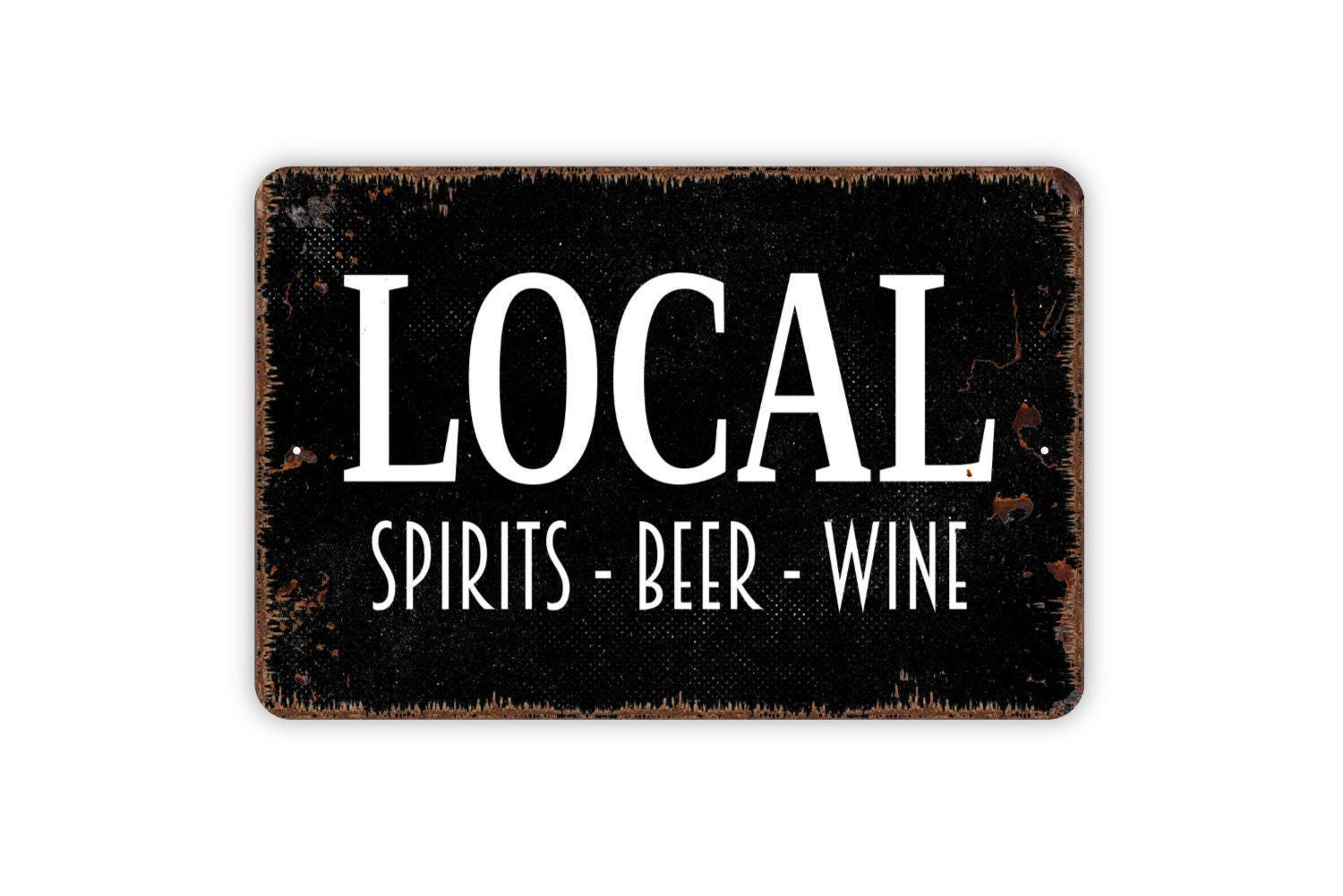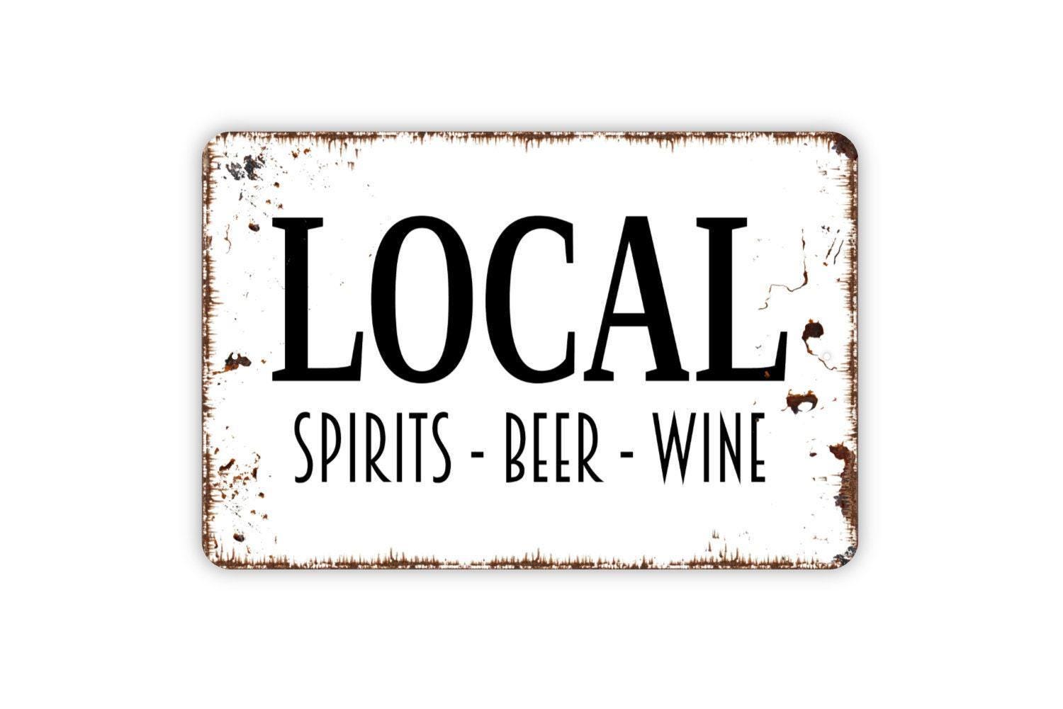 Local Spirits Beer Wine Sign | Rustic Bar, Pub, or Kitchen Wall Sign | Winery, Brewery, or Home Bar Metal Sign or Vinyl Sticker