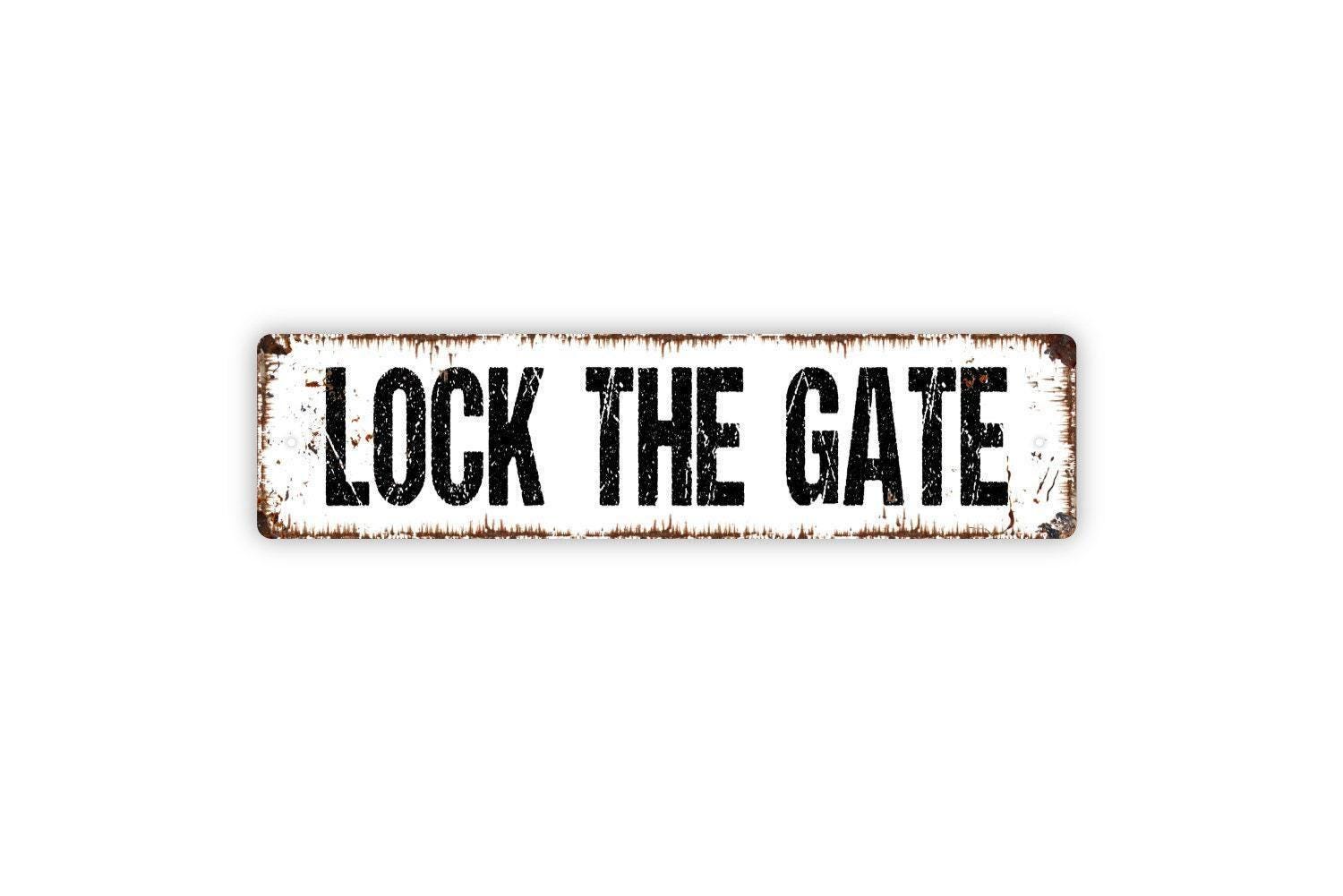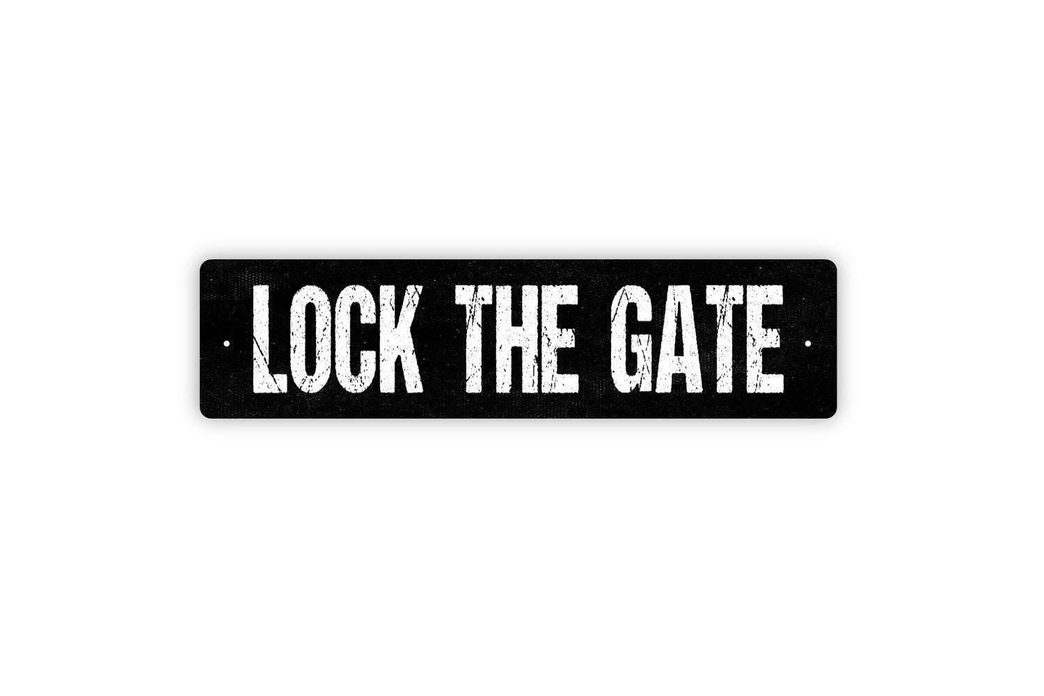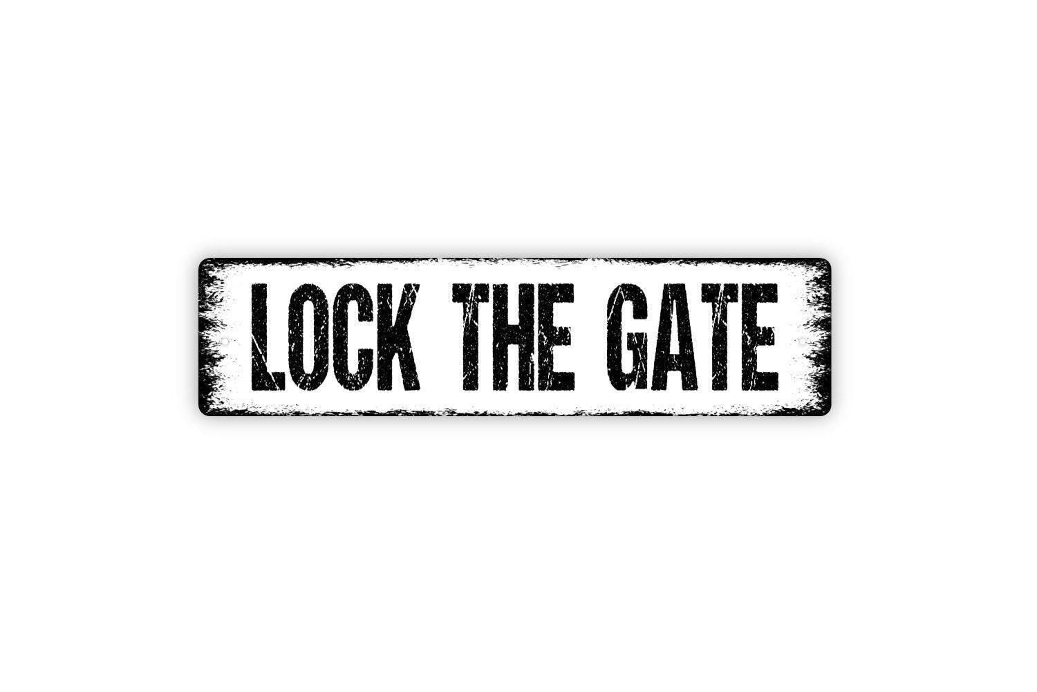 Lock The Gate Sign - Please Close Gate Keep Locked Vinyl Sticker Or Street Metal Sign or Door Name Plate Plaque