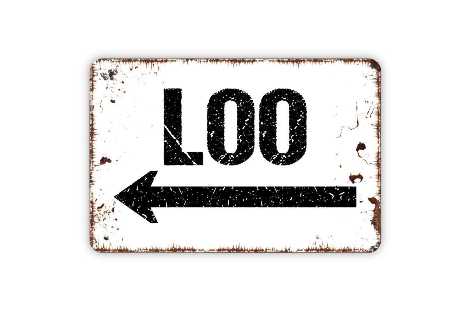 Loo Sign with Right or Left Arrow Metal Sign, Restroom Farmhouse Style Wall Decor Modern Wall Metal Sign