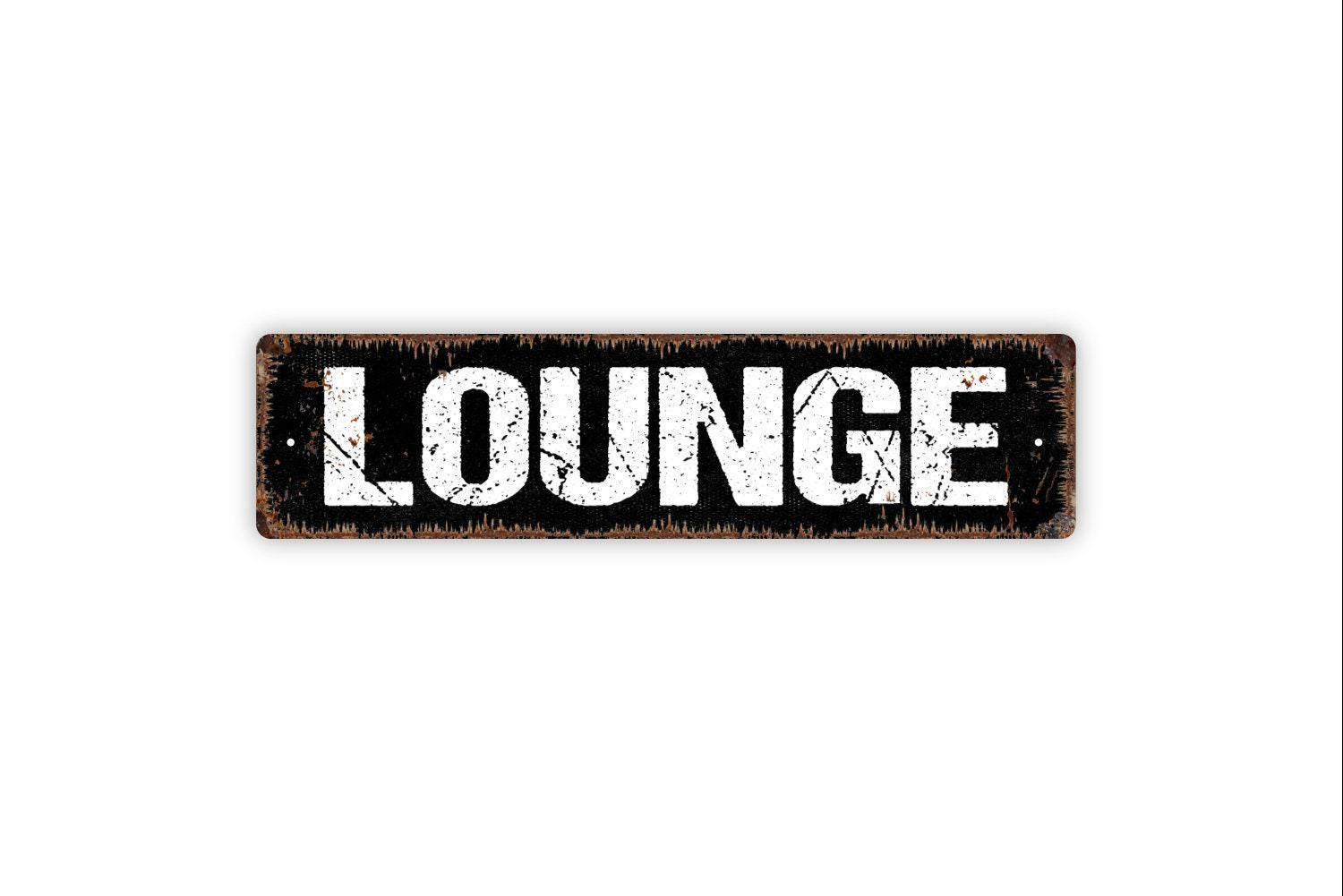 Lounge Sign - Break Room Small Business Reception Lobby Parlor Cigar Den Man Cave Rustic Street Metal Sign or Door Name Plate Plaque