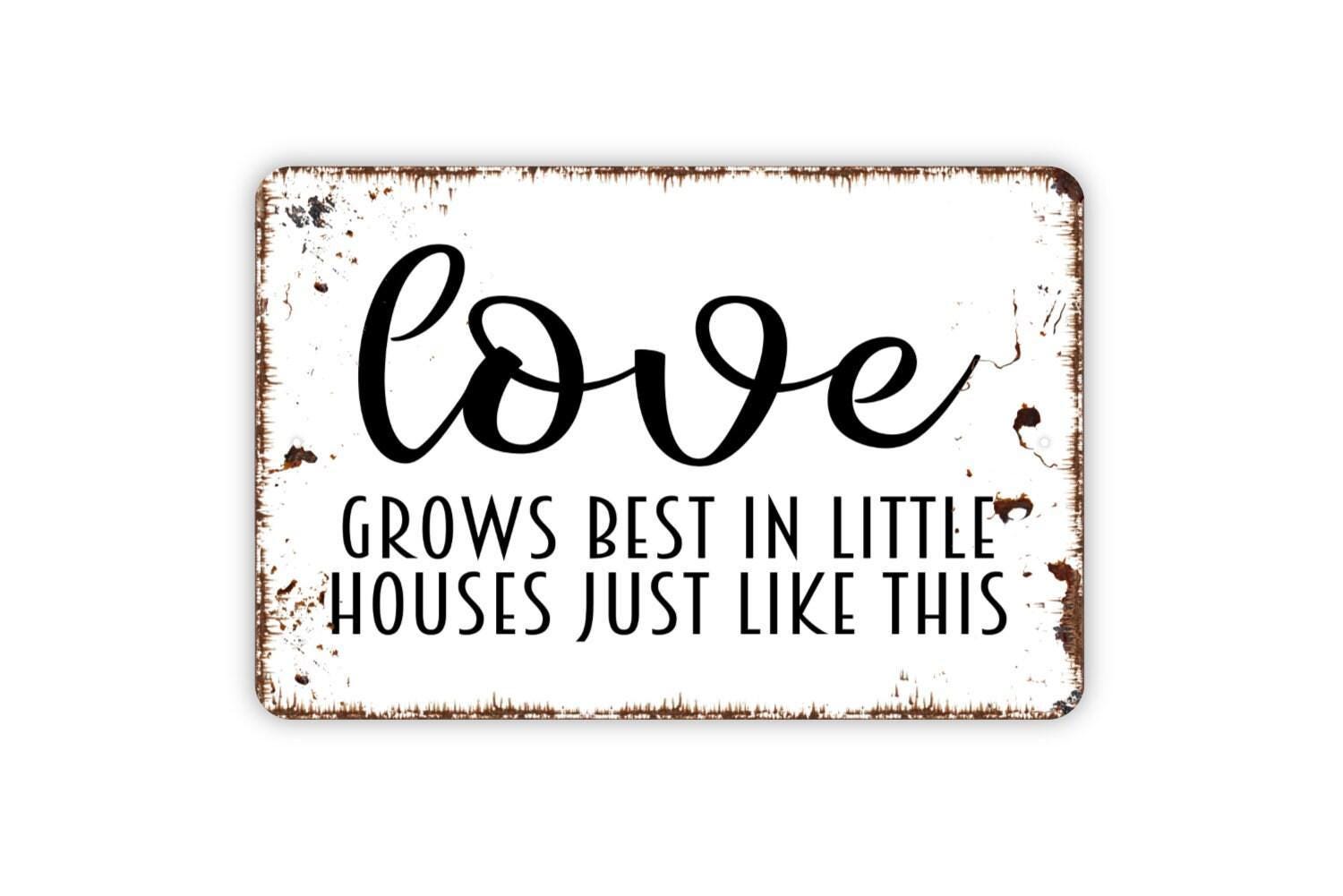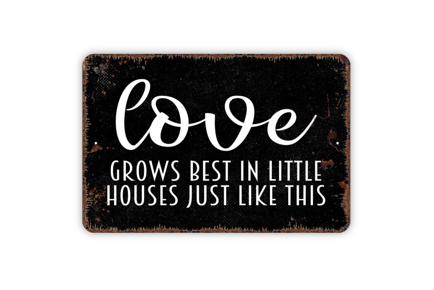Love Grows Best In Little Houses Just Like This Sign - Welcome Farmhouse Decor Metal Wall Art