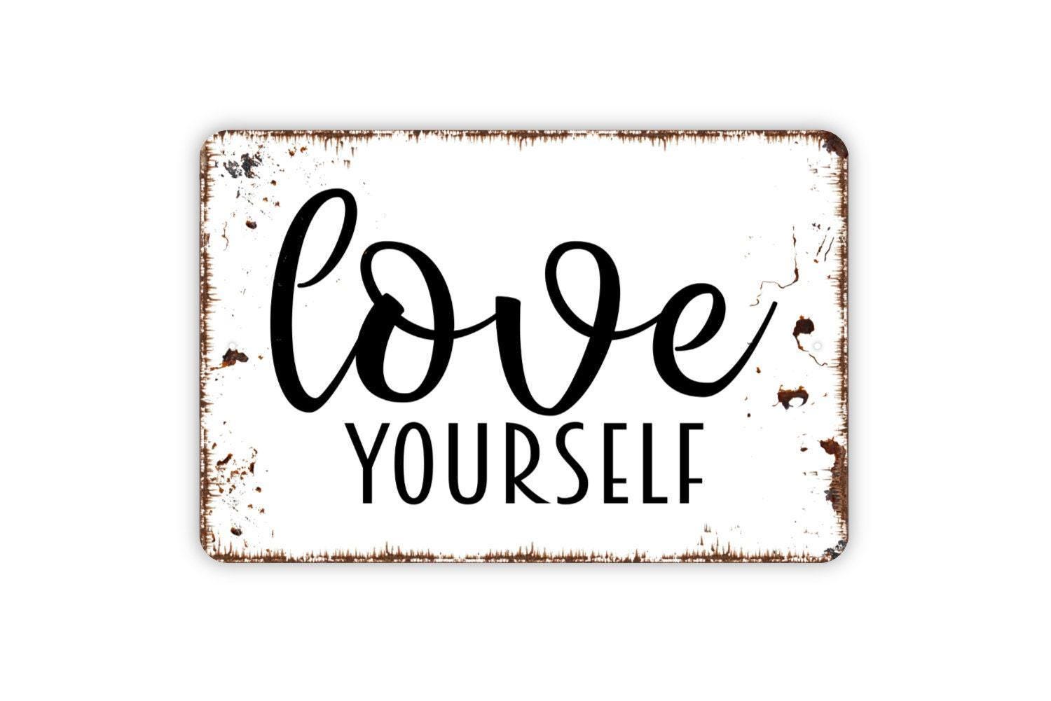 Love Yourself Sign | Rustic Inspirational Wall Decor | Farmhouse Quote Sign | Custom Metal Sign or Vinyl Sticker | Motivational Wall Art
