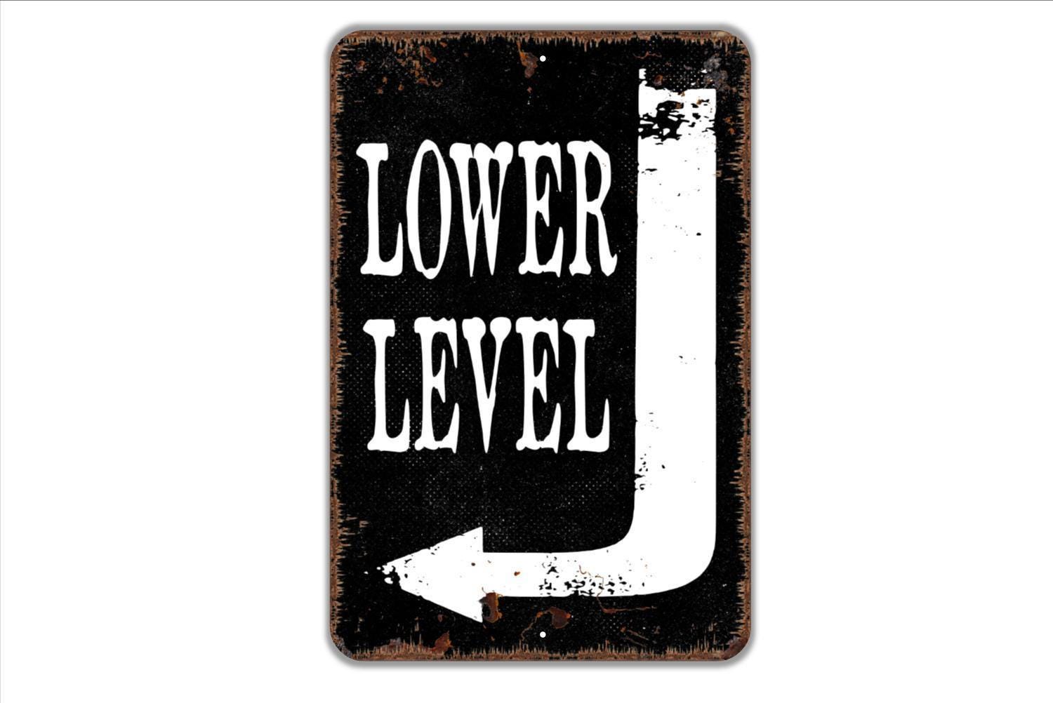 Lower Level Sign with Right or Left Arrow – Basement Downstairs Directional Wall Decor – Business Home Property Notice Metal Sign or Sticker