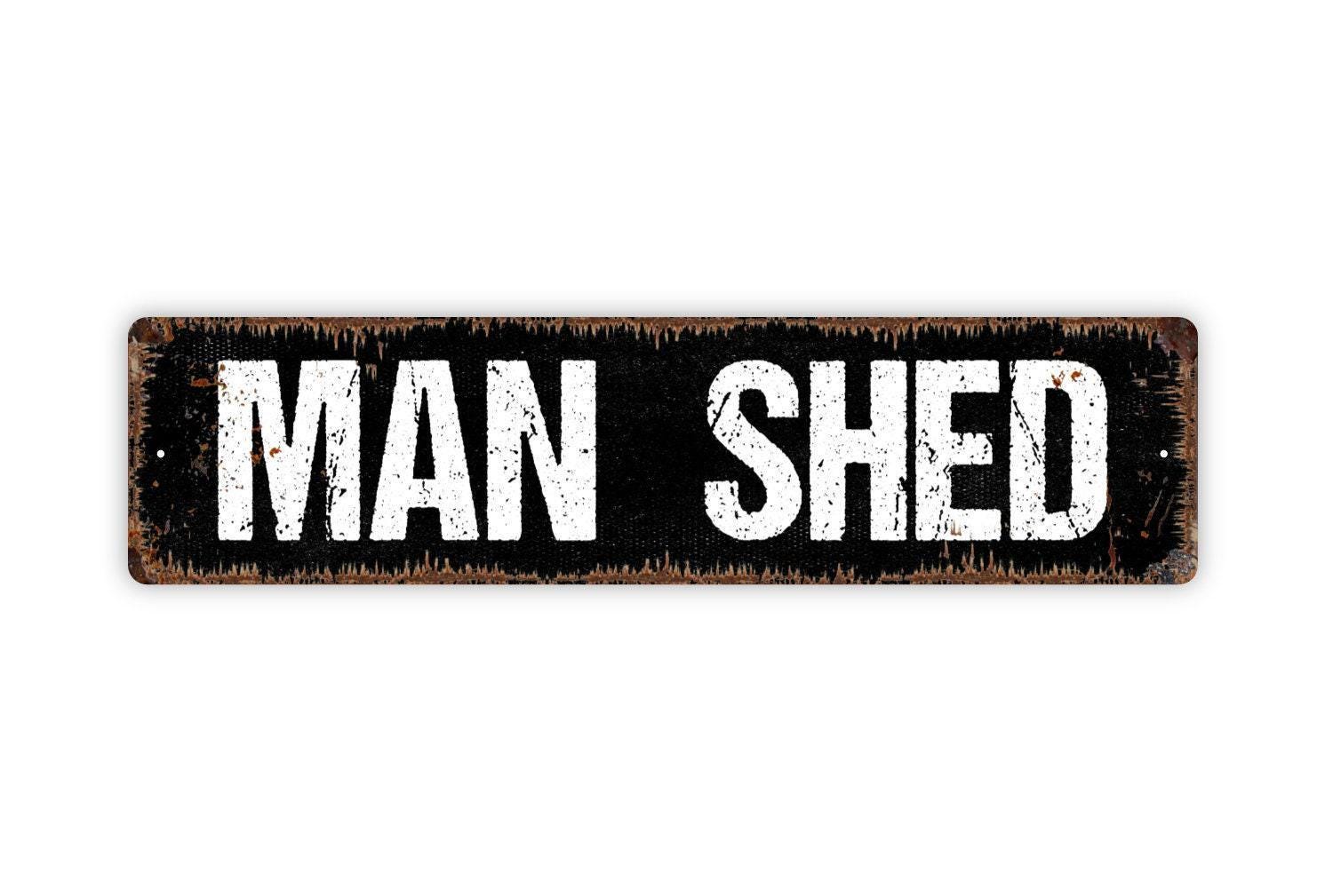Man Shed Sign | Funny Rustic Garage Workshop Decor | Metal Sign or Vinyl Sticker for Shed Barn Cabin Man Cave