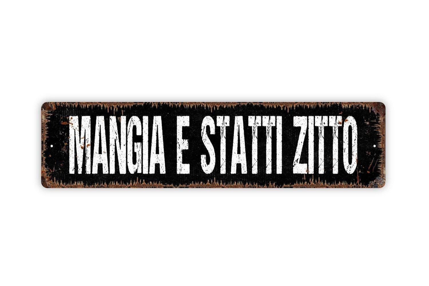 Mangia E Statti Zitto Sign | Funny Italian Kitchen or Dining Room Wall Sign | Shut Up and Eat Humor Metal Sign or Vinyl Sticker Restaurant