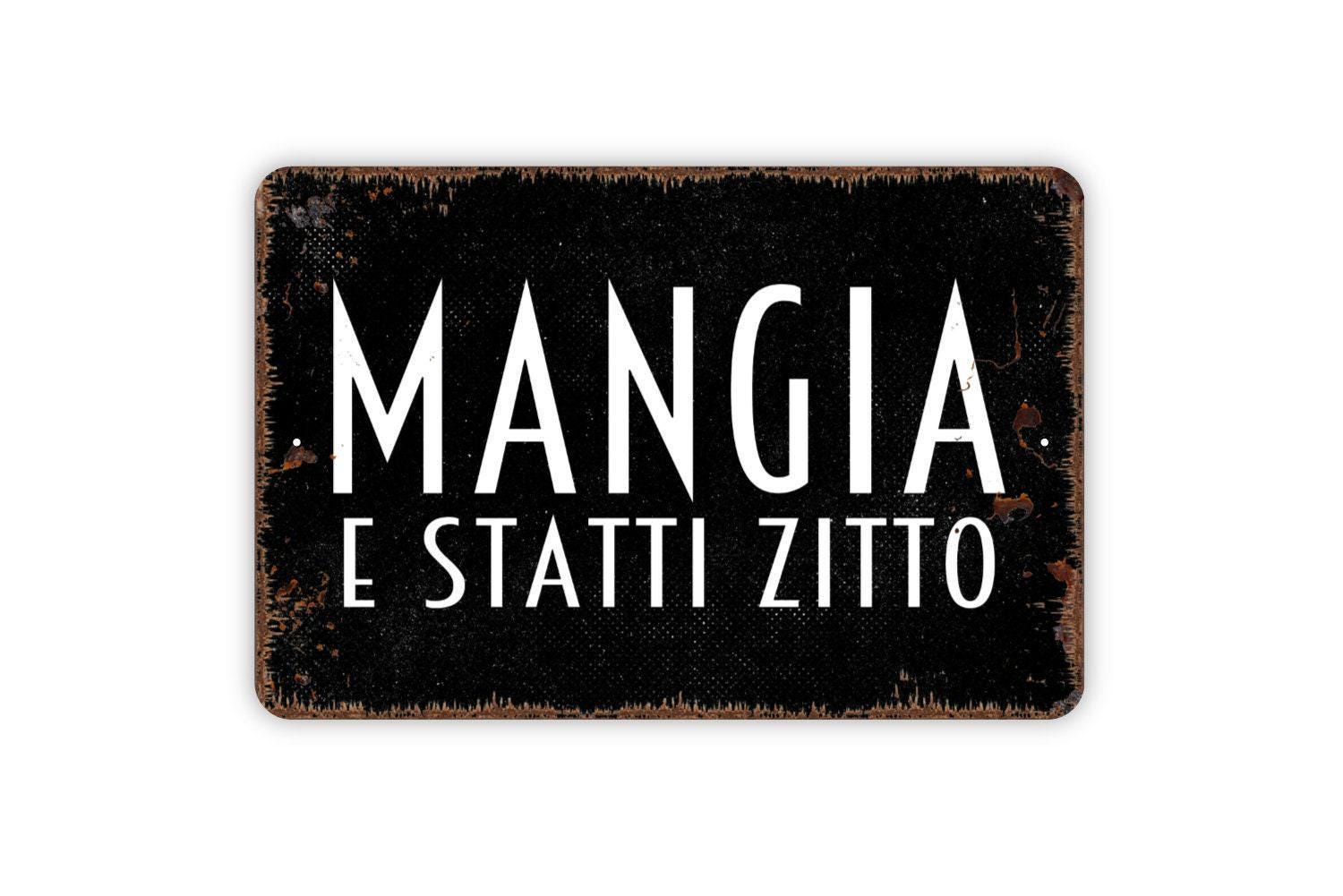 Mangia E Statti Zitto Sign | Italian Kitchen Wall Decor | Funny Rustic Dining Room Pasta Food Lover Gift Sign | Metal Sign or Vinyl Sticker