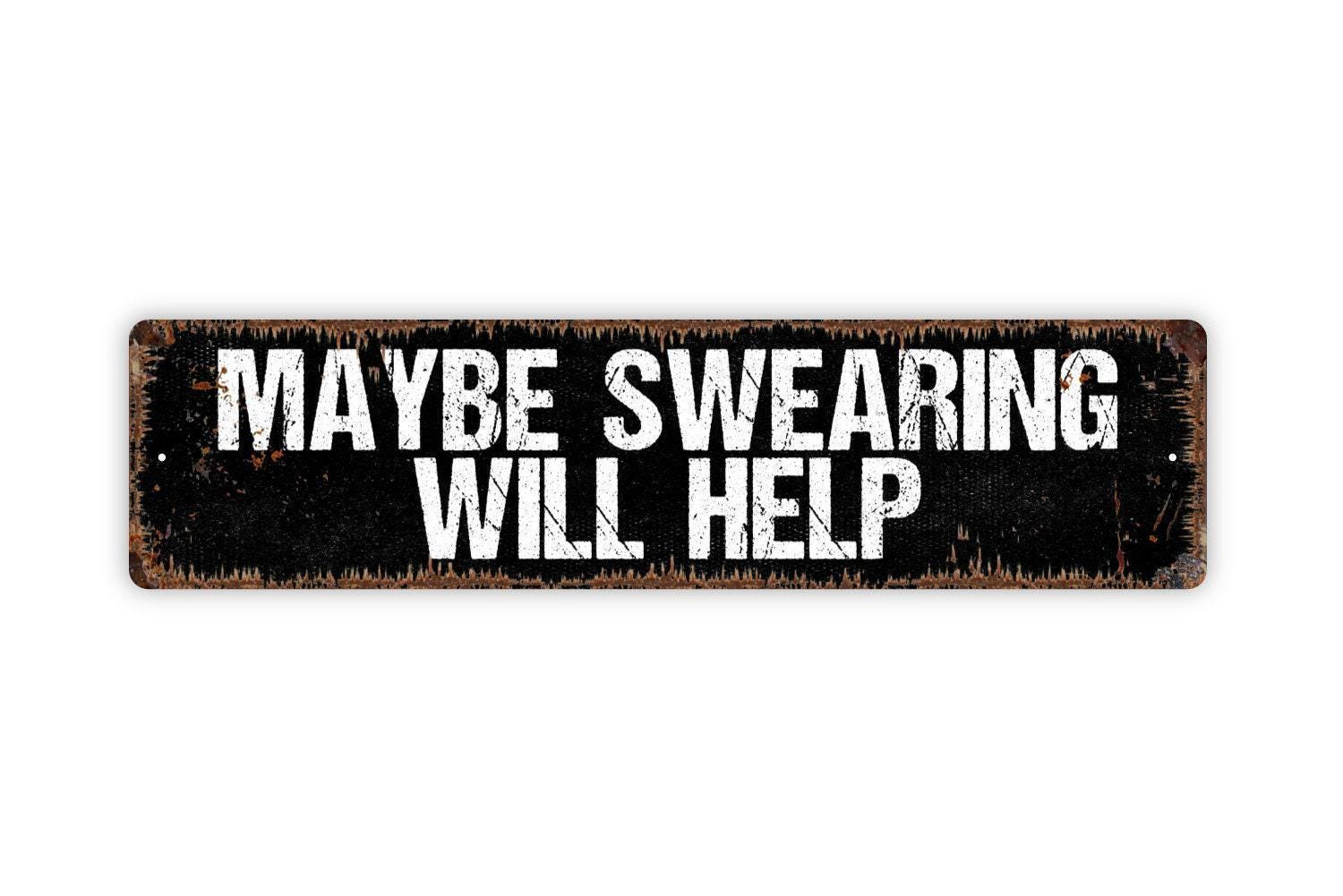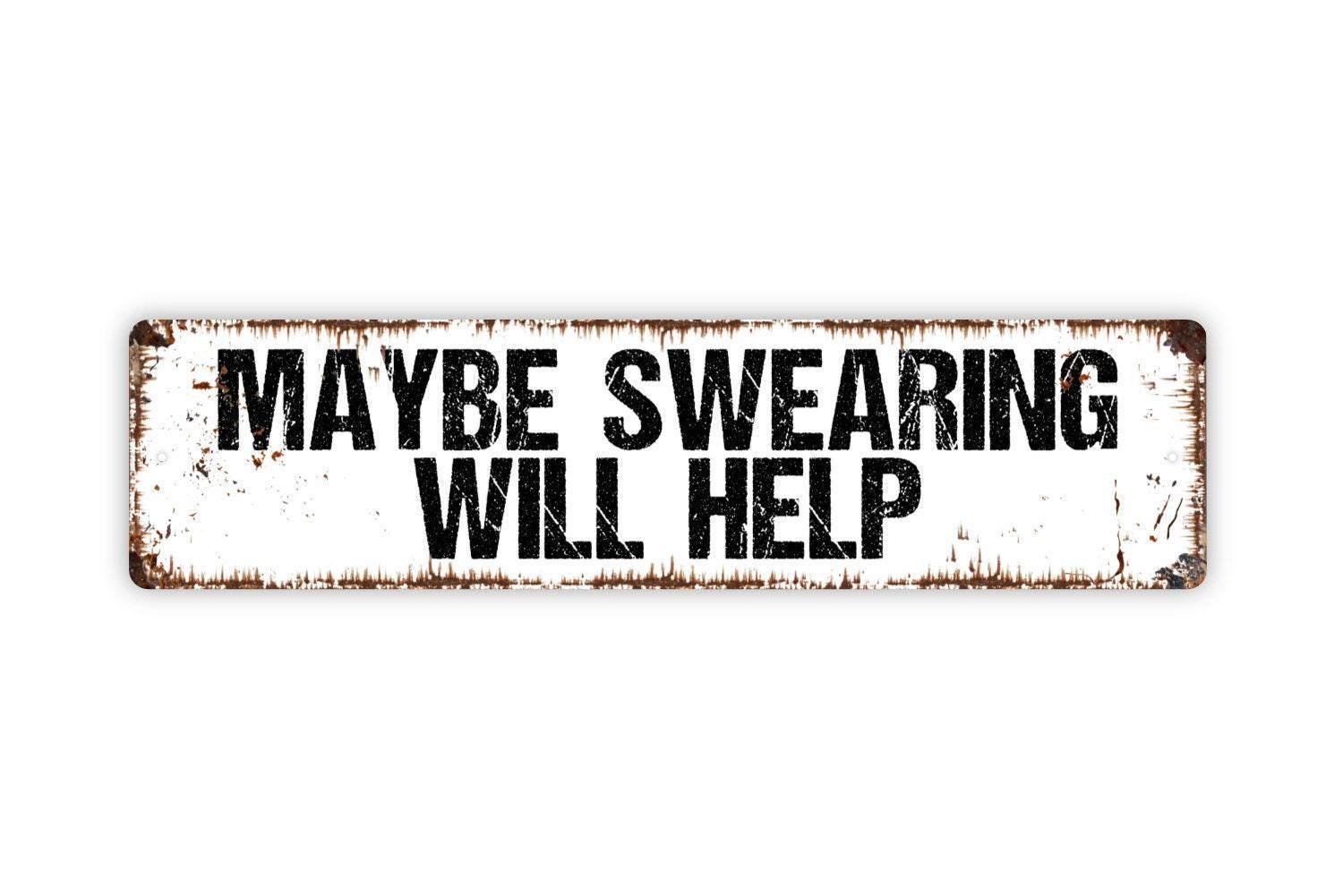 Maybe Swearing Will Help Sign - Funny Curse Cursing Oops Bad Luck Vinyl Sticker Or Street Metal Sign or Door Name Plate Plaque