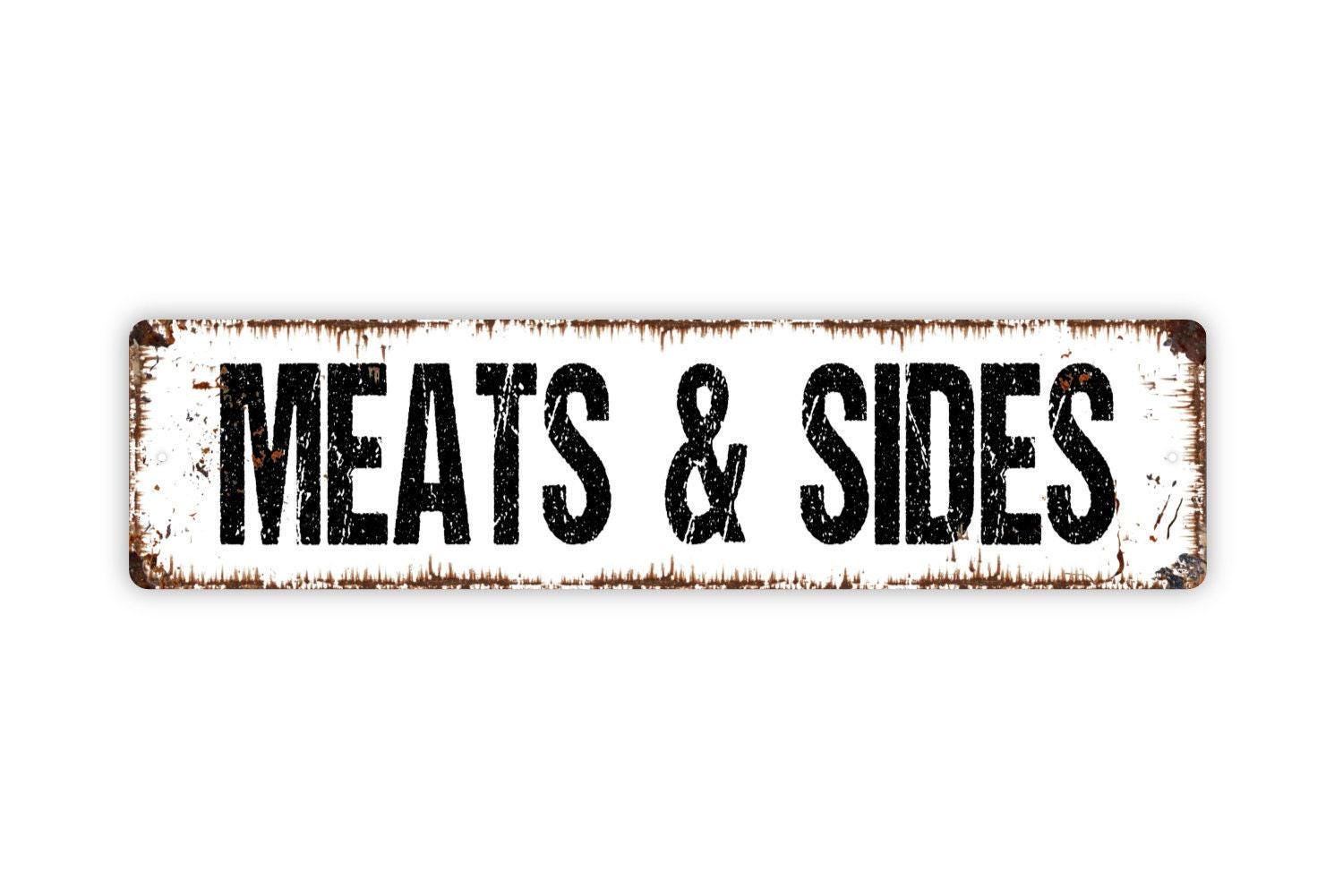 Meats and Sides Sign - Kitchen Vinyl Sticker Or Metal Street Sign or Door Name Plate Plaque