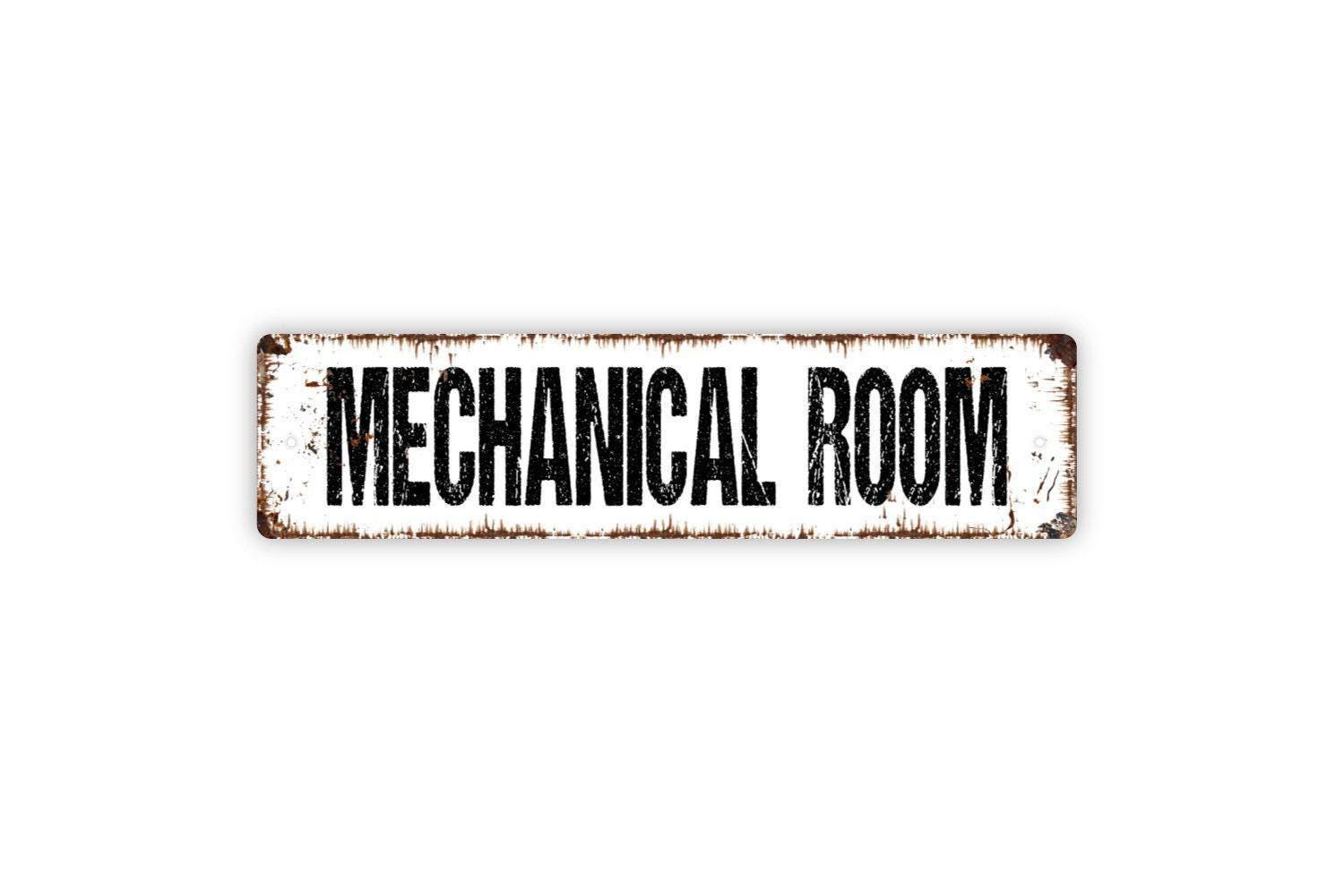 Mechanical Room Sign - Utilities Electric Room Electricity Danger Warning High Voltage Rustic Street Metal Sign or Door Name Plate Plaque