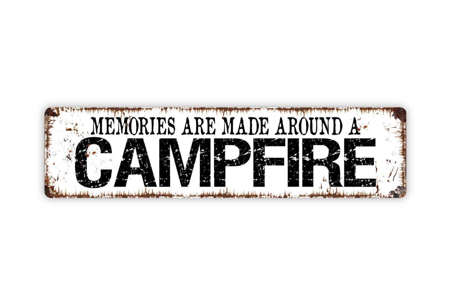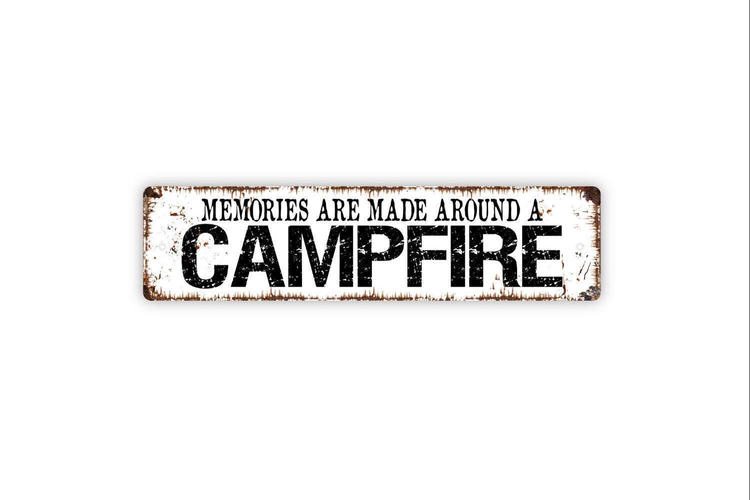 Memories Are Made Around A Campfire Sign - Metal Vinyl Sticker Or Street Sign or Door Name Plate Plaque - Indoor or Outdoor
