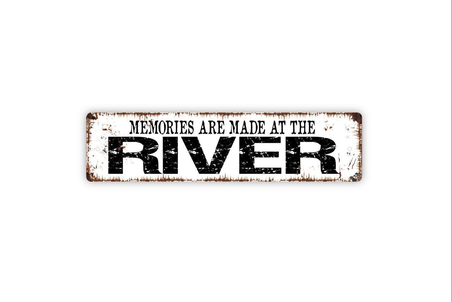 Memories Are Made At The River Sign - Vinyl Sticker Or Street Metal Sign or Door Name Plate Plaque