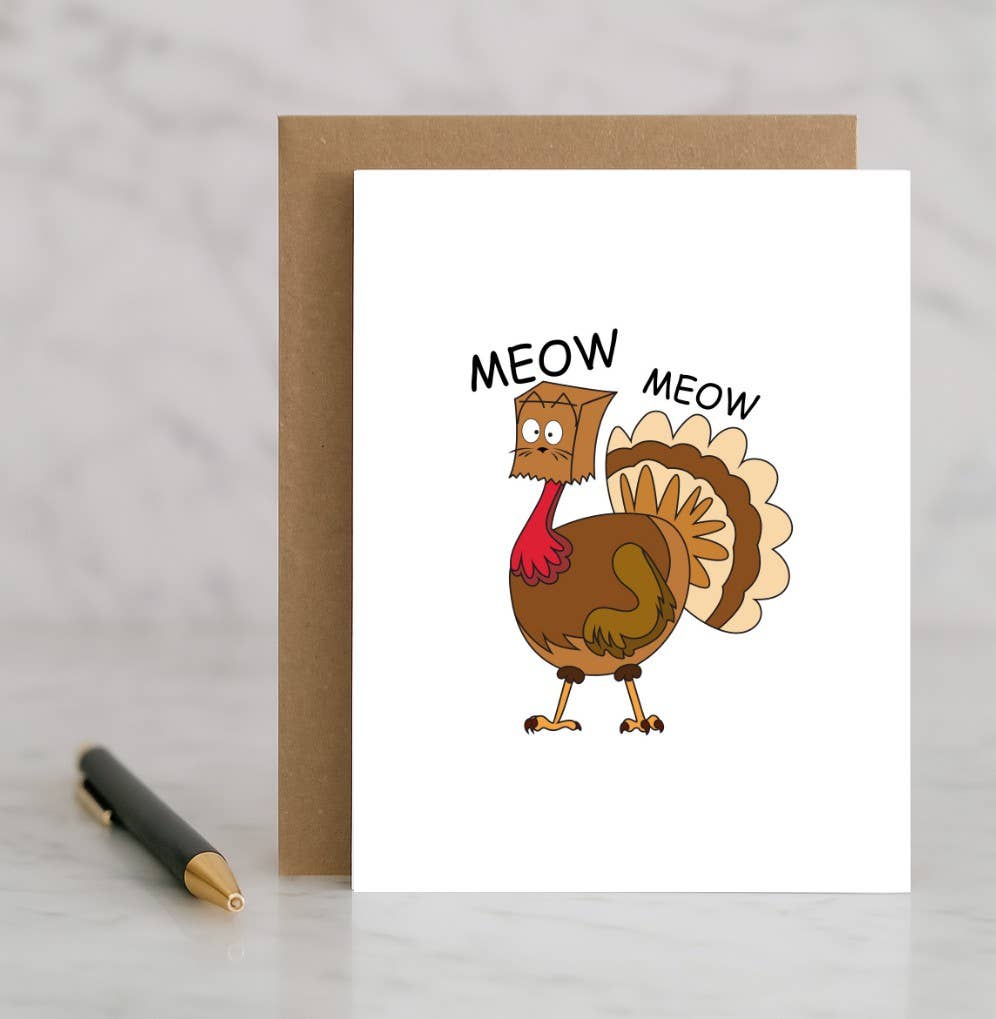 Meow Turkey Card – Funny Thanksgiving Cat Greeting Cute Fall