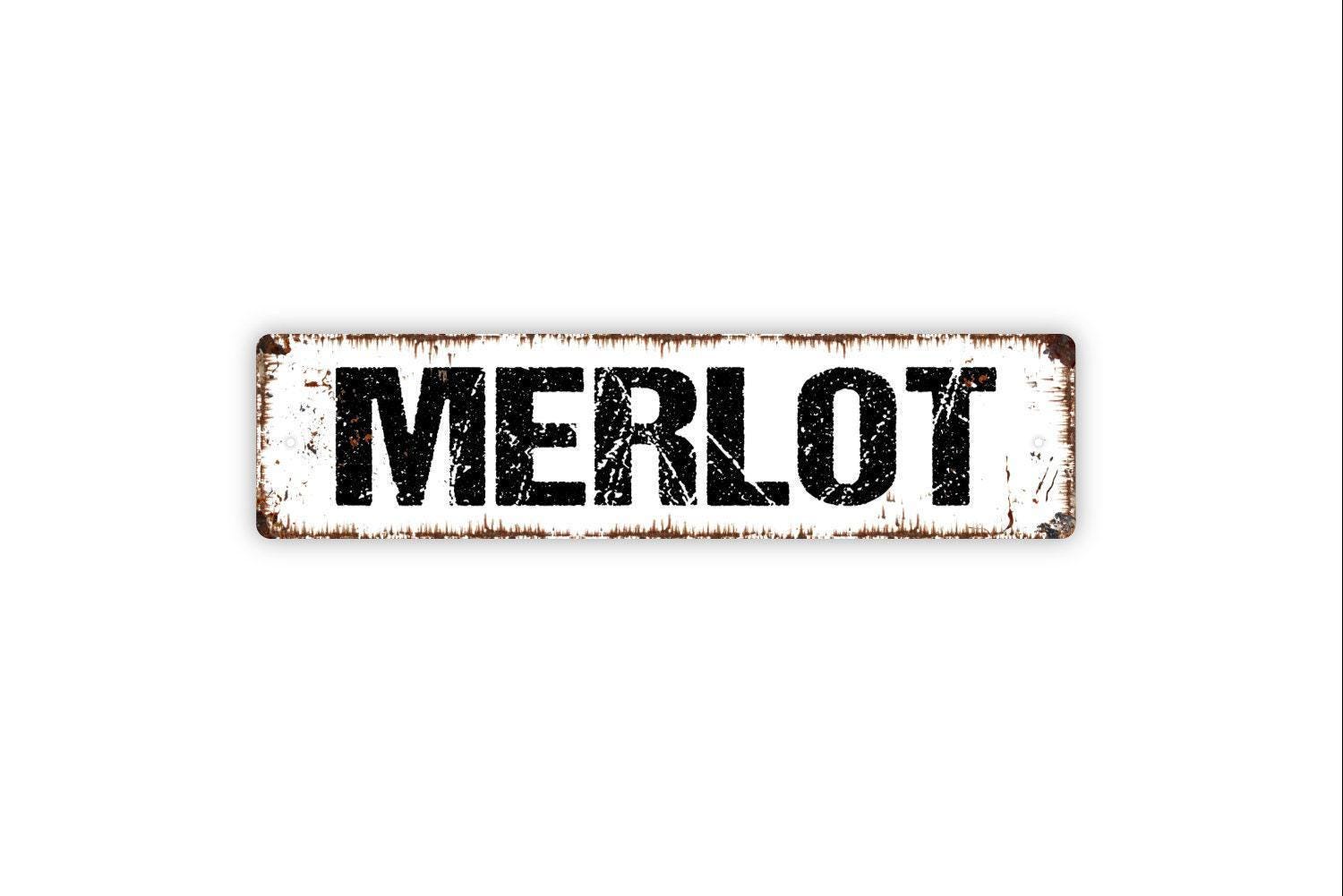 Merlot Sign - Wine Winery Vineyard Vinyl Sticker Or Street Metal Sign or Door Name Plate Plaque