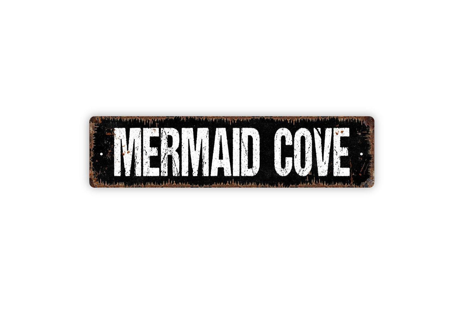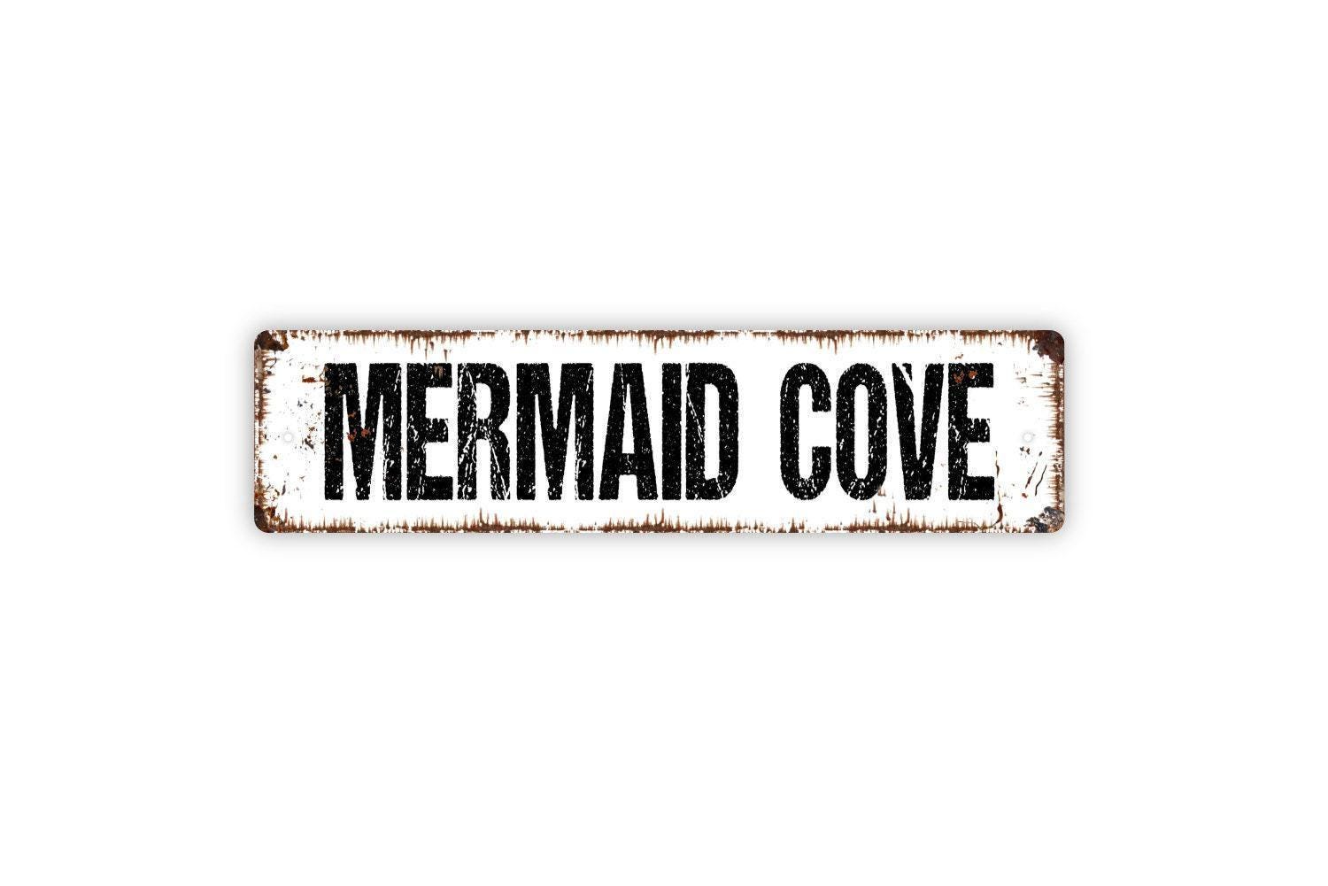 Mermaid Cove Sign - Vinyl Sticker Or Metal Street Sign or Door Name Plate Plaque