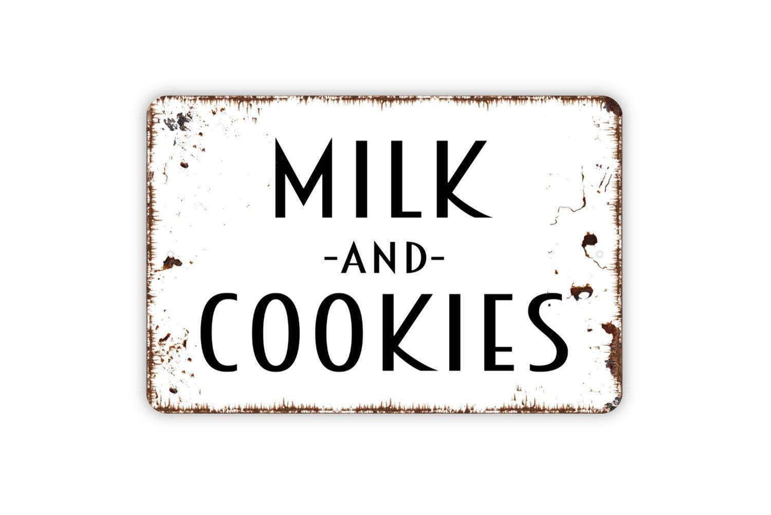 Milk and Cookies Sign | Rustic Farmhouse Kitchen Wall Sign for Bakery, Café, or Dining Room | Metal Sign or Vinyl Sticker | Snack Dessert