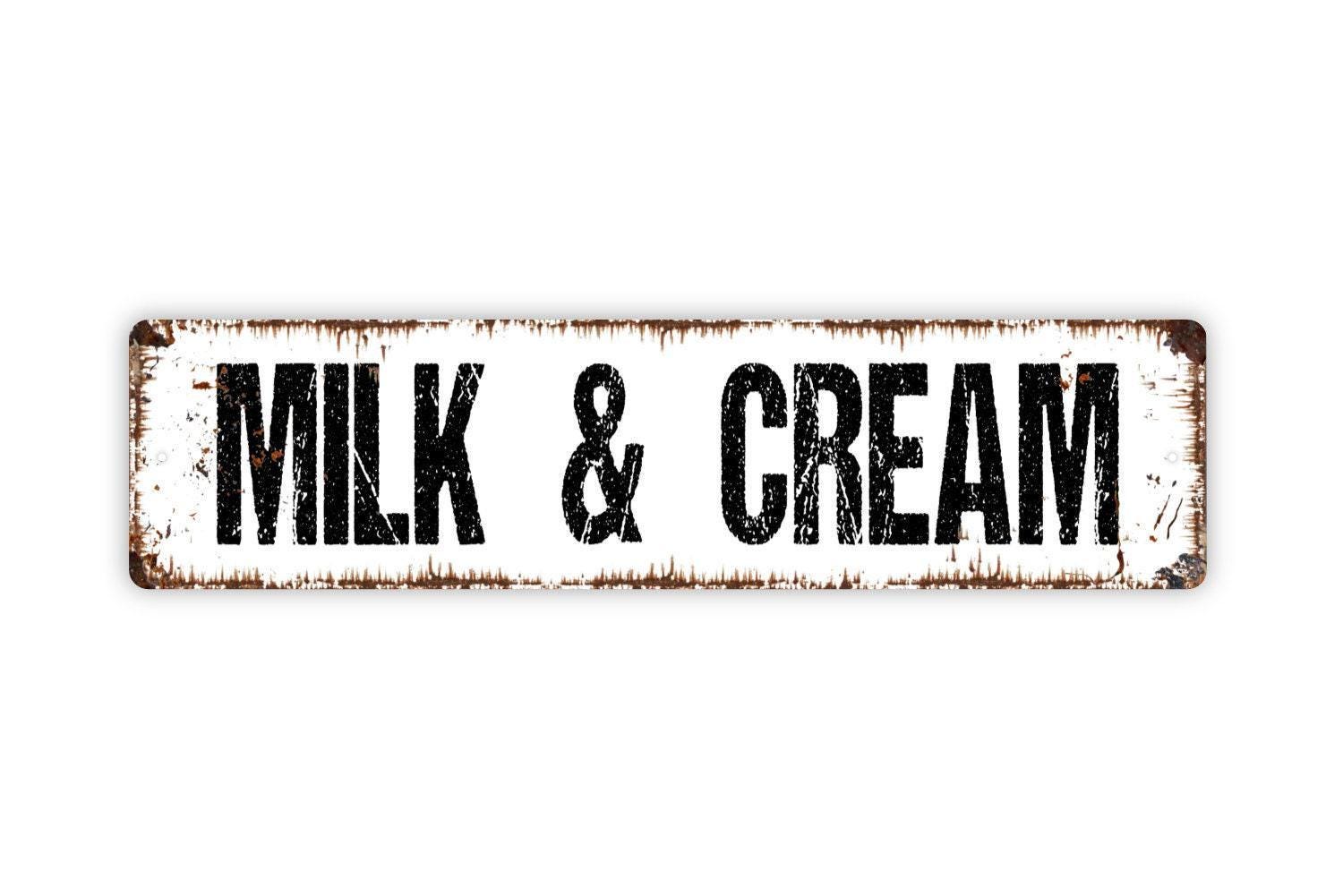 Milk and Cream Sign - Kitchen Dairy Cow Pantry Farmers Market Farm Fresh Vinyl Sticker Or Street Metal Sign or Door Name Plate Plaque