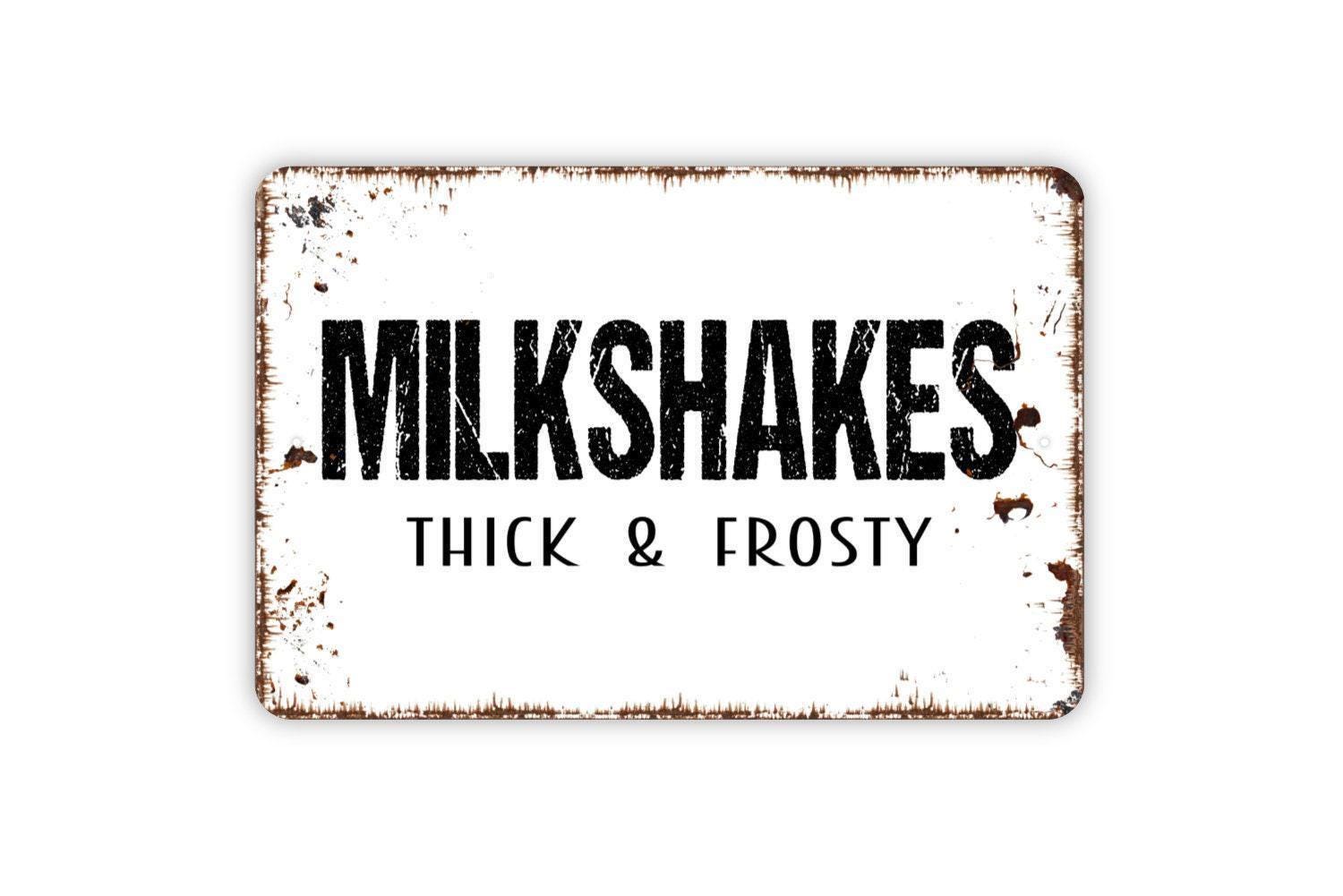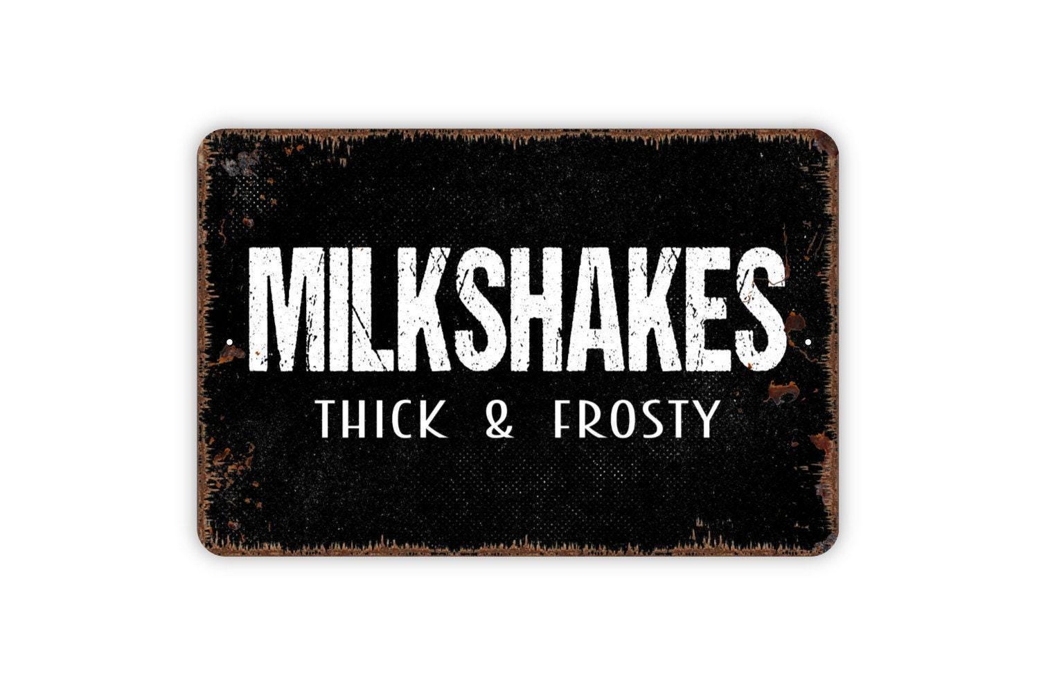 Milkshakes Thick And Frosty Sign, Ice Cream Parlor Farmhouse Contemporary Modern Wall Metal Sign
