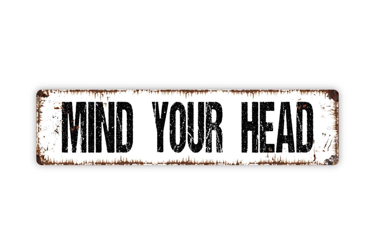 Mind Your Head Sign - Vinyl Sticker Or Metal Street Sign or Door Name Plate Plaque