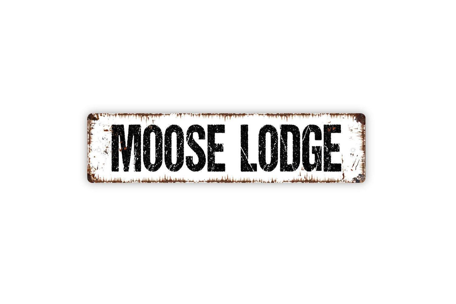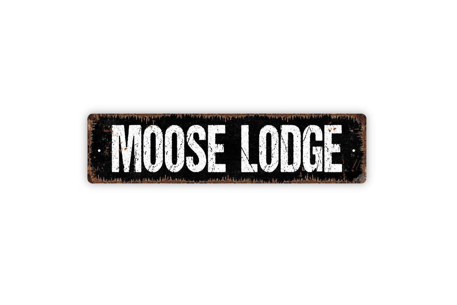 Moose Lodge Sign - Vinyl Sticker Or Metal Street Sign or Door Name Plate Plaque