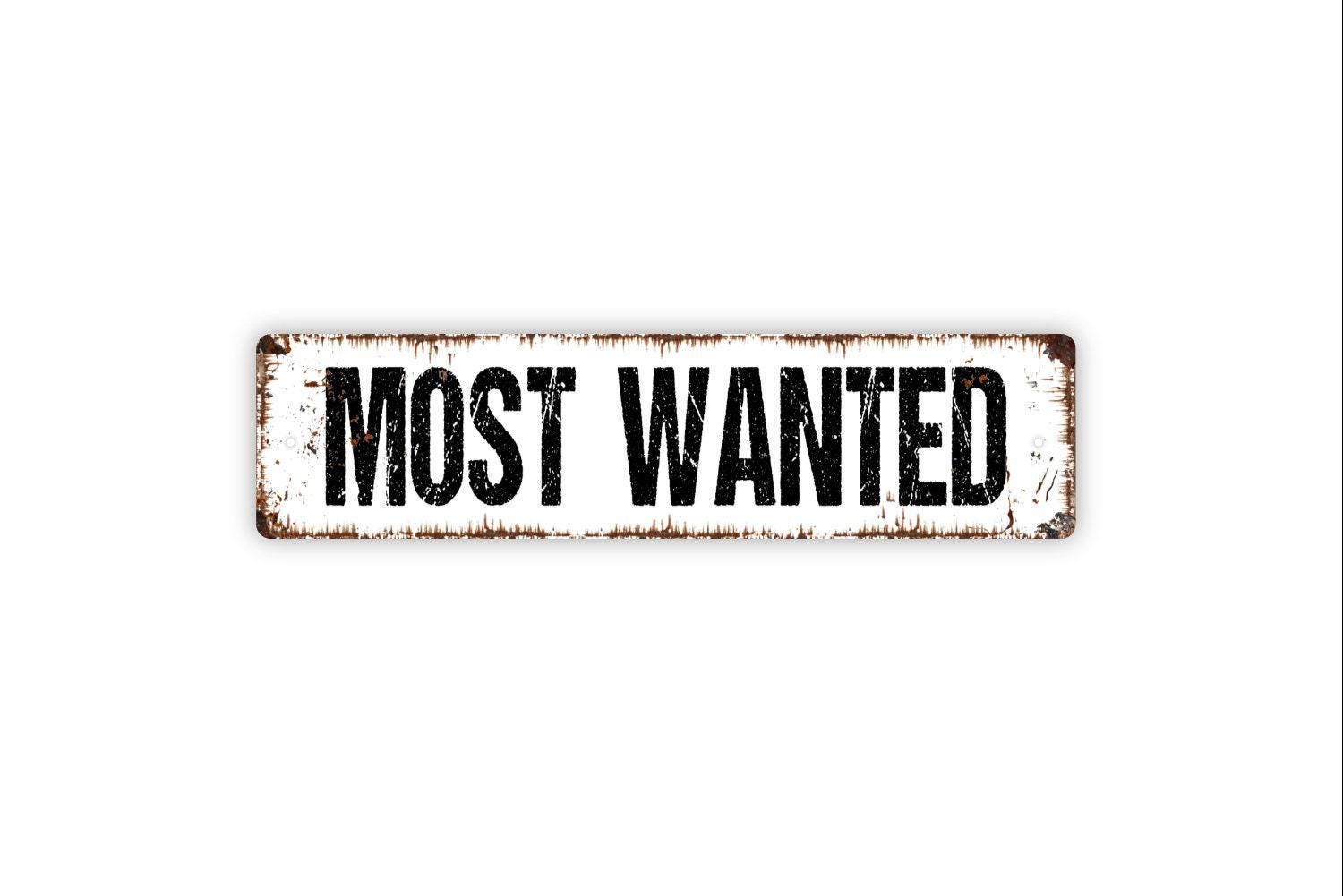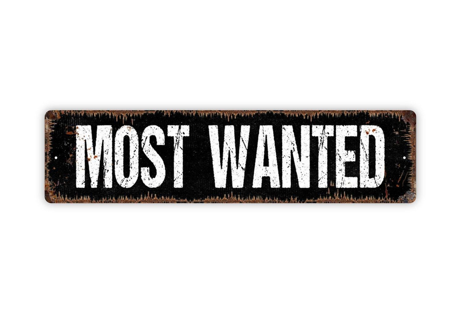 Most Wanted Sign - Funny Vinyl Sticker Or Metal Street Sign or Door Name Plate Plaque