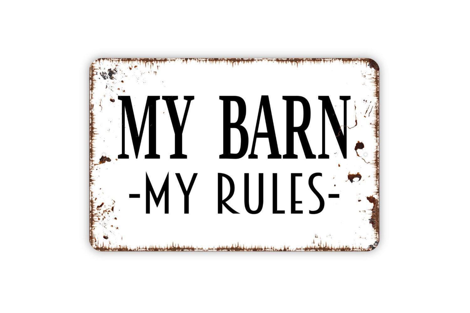 My Barn My Rules Sign Metal or Vinyl Sticker | Rustic Farm Sign | Barn Wall Decor | Funny Farmhouse Sign | Country Home Gift Sticker