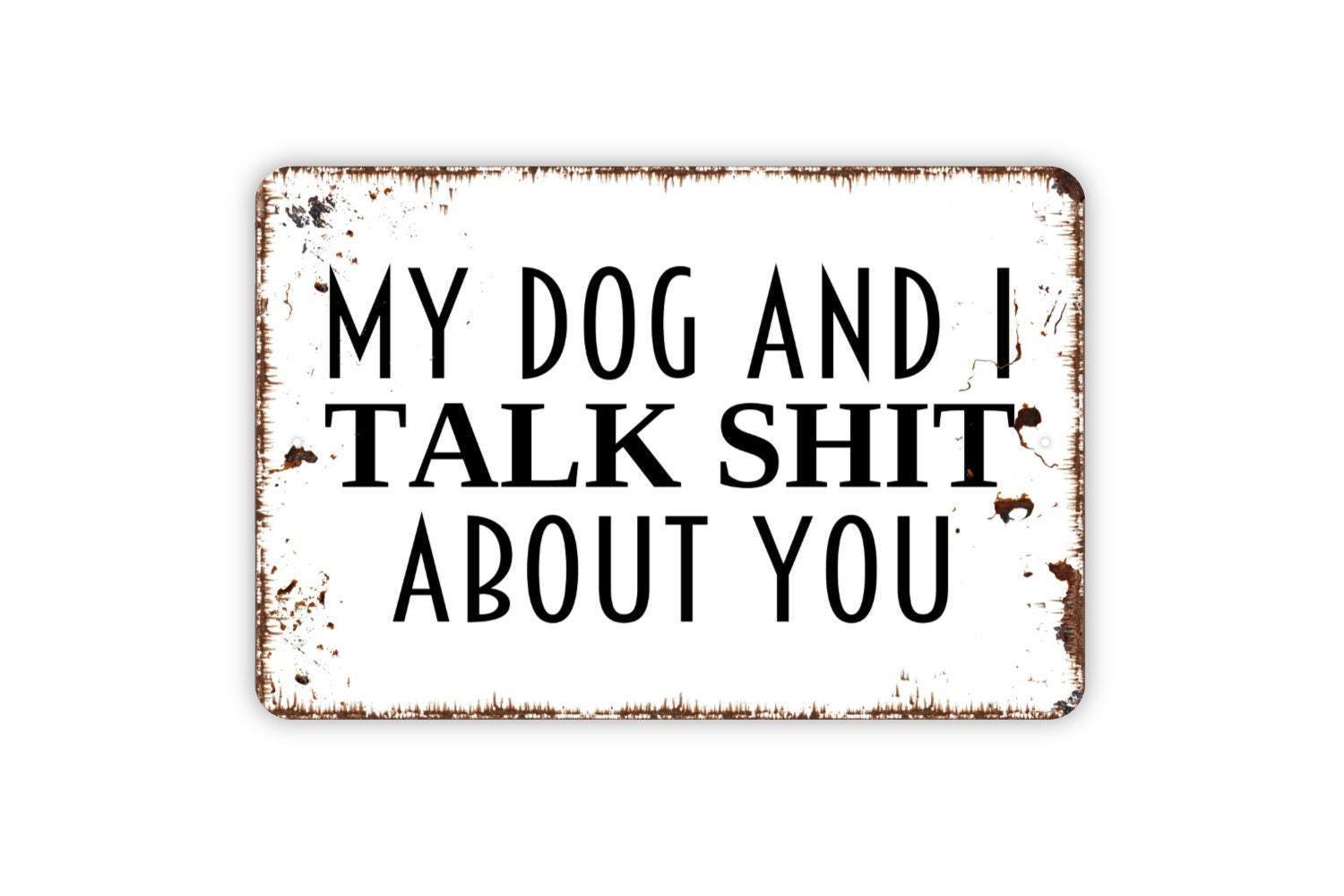My Dog and I Talk Shit About You Sign - Funny Dog Pet Owner Contemporary Distressed Modern Wall Art Metal Sign