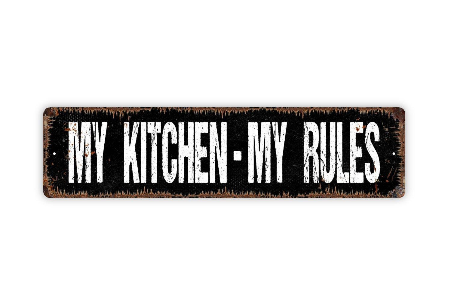 My Kitchen My Rules Sign, Kitchen Farmhouse Bed and Breakfast Rustic Custom Metal Sign, Rustic Street Sign or Door Name Plate Plaque