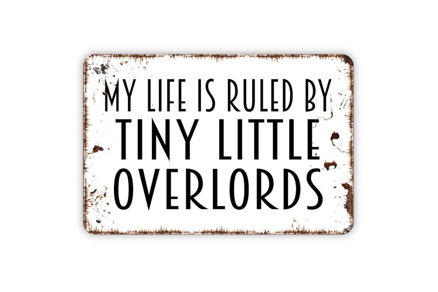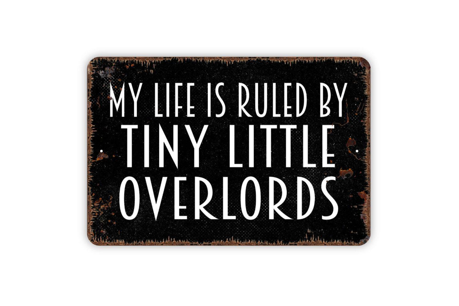 My Life Is Ruled By Tiny Little Overlords Sign - Funny Metal Wall Art - Indoor or Outdoor