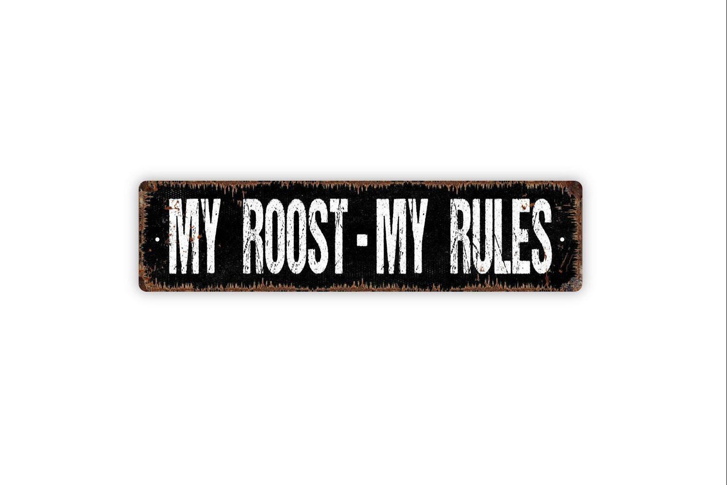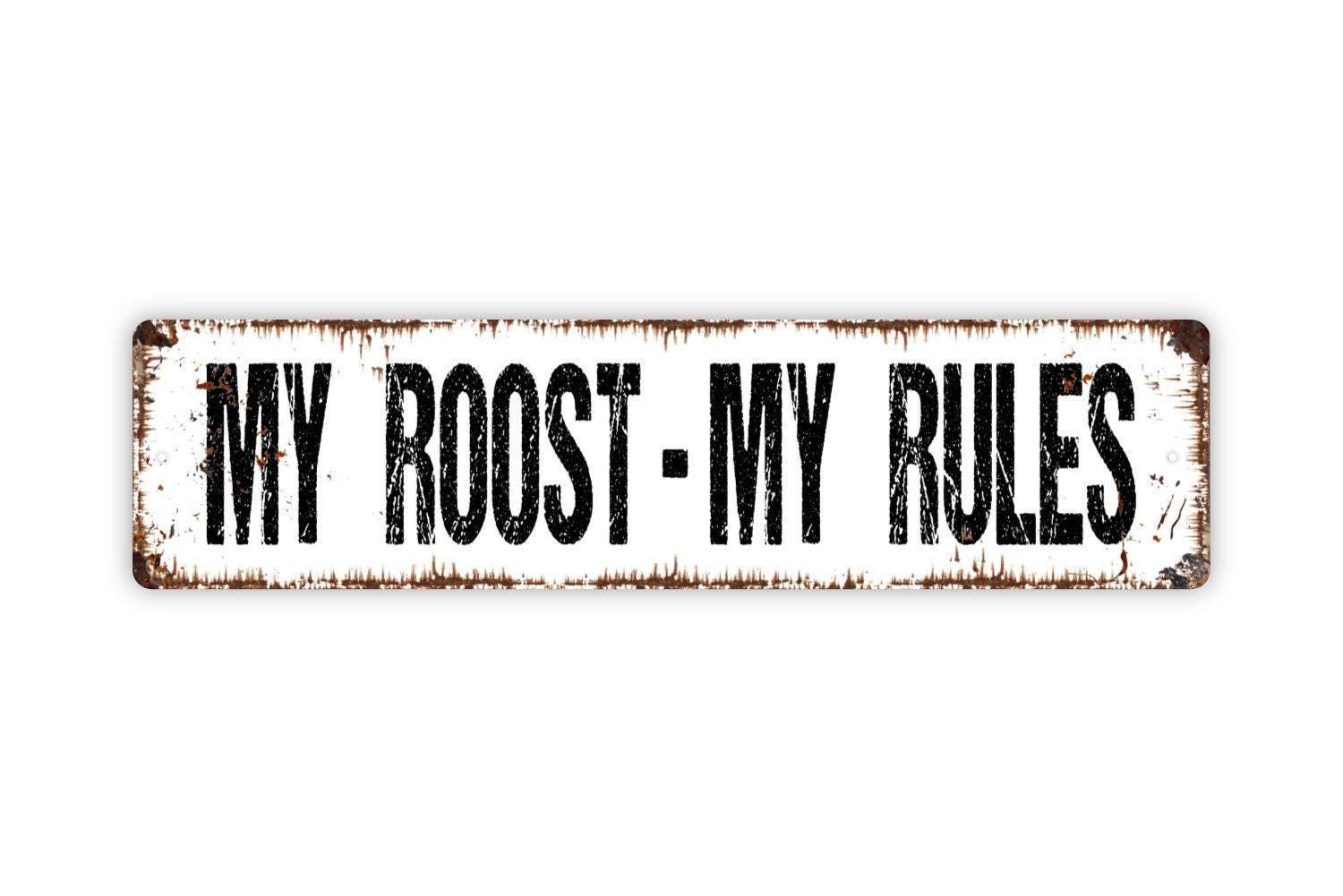 My Roost My Rules - Chicken Coop Hen House Farm Ranch Farmer Vinyl Sticker Or Street Metal Sign Or Door Name Plaque