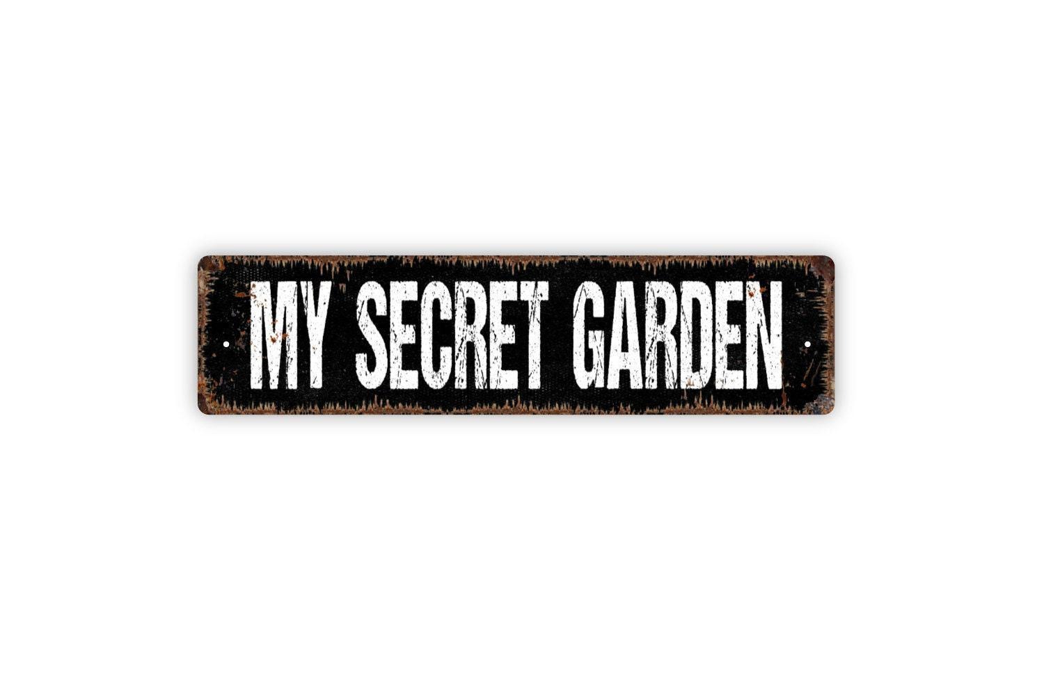 My Secret Garden Sign - Gardener Greenhouse Grow Room Yard Vegetables Flower Garden Rustic Street Metal Sign or Door Name Plate Plaque