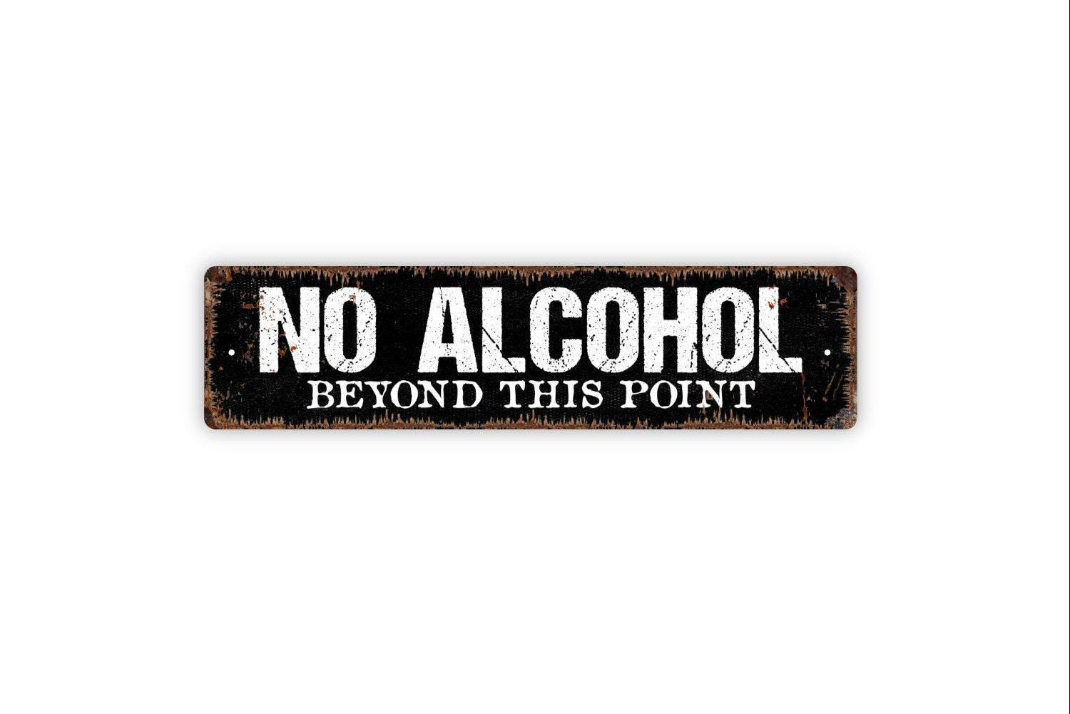 No Alcohol Beyond This Point Sign - Vinyl Sticker Or Metal Street Sign or Door Name Plate Plaque