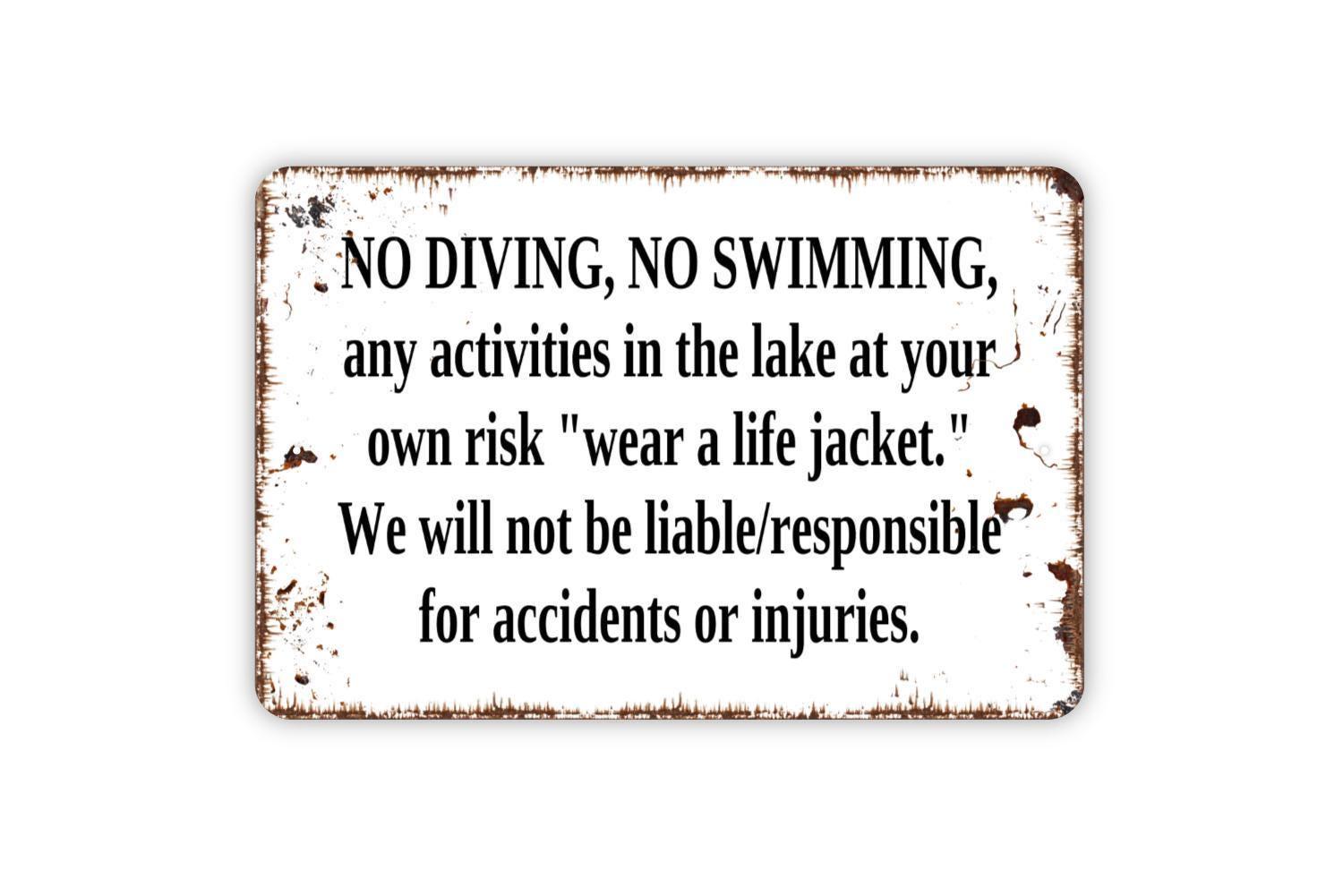 No Diving, No Swimming Any Activities In The Lake At Your Own Risk Sign - Metal Sign Lake Rules - Indoor or Outdoor Use