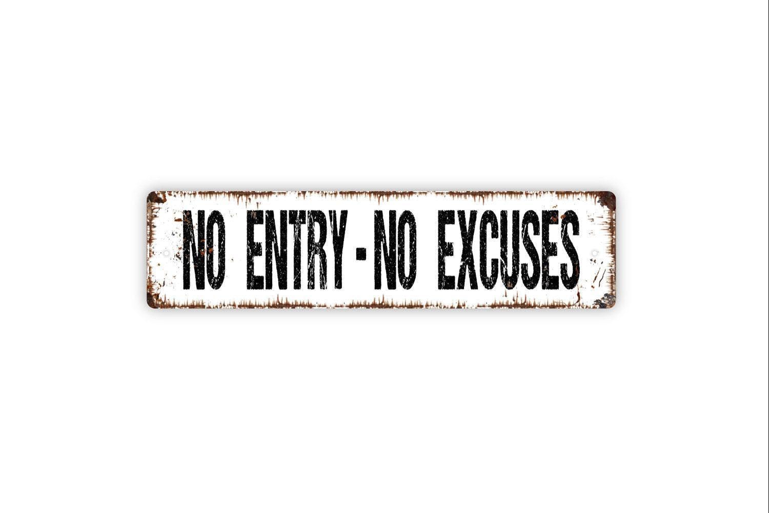 No Entry No Excuses Sign - Private Entrance Guests Owners Only No Trespassing Vinyl Sticker Or Street Metal Sign or Door Name Plate Plaque