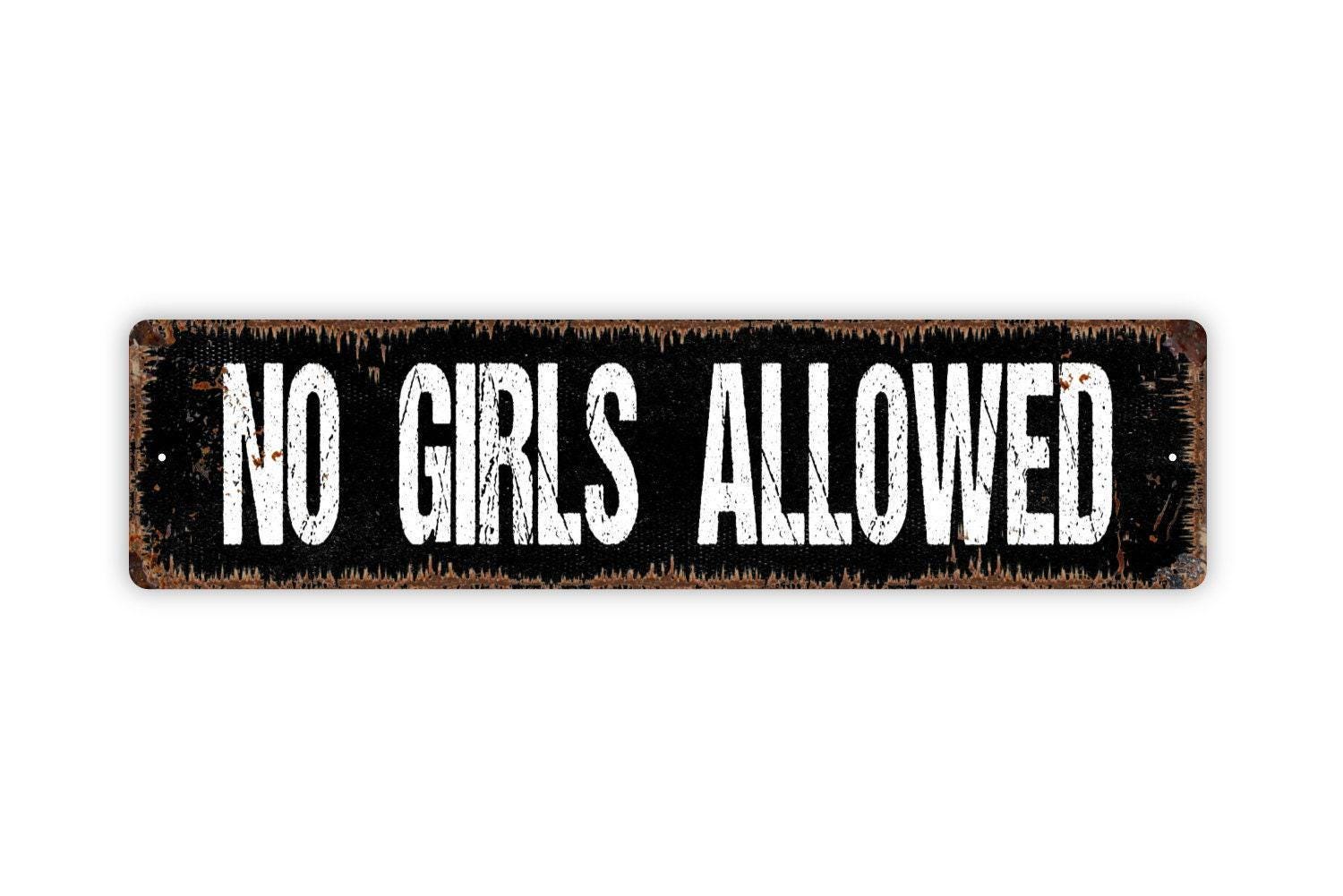 No Girls Allowed Sign Metal or Vinyl Sticker | Boys Only Wall Decor | Kids Room Sign | Clubhouse Door Sign | Funny Man Cave Wall Art