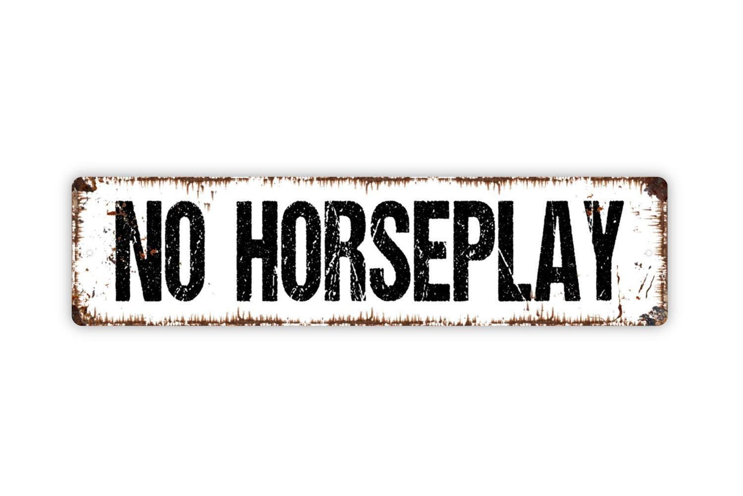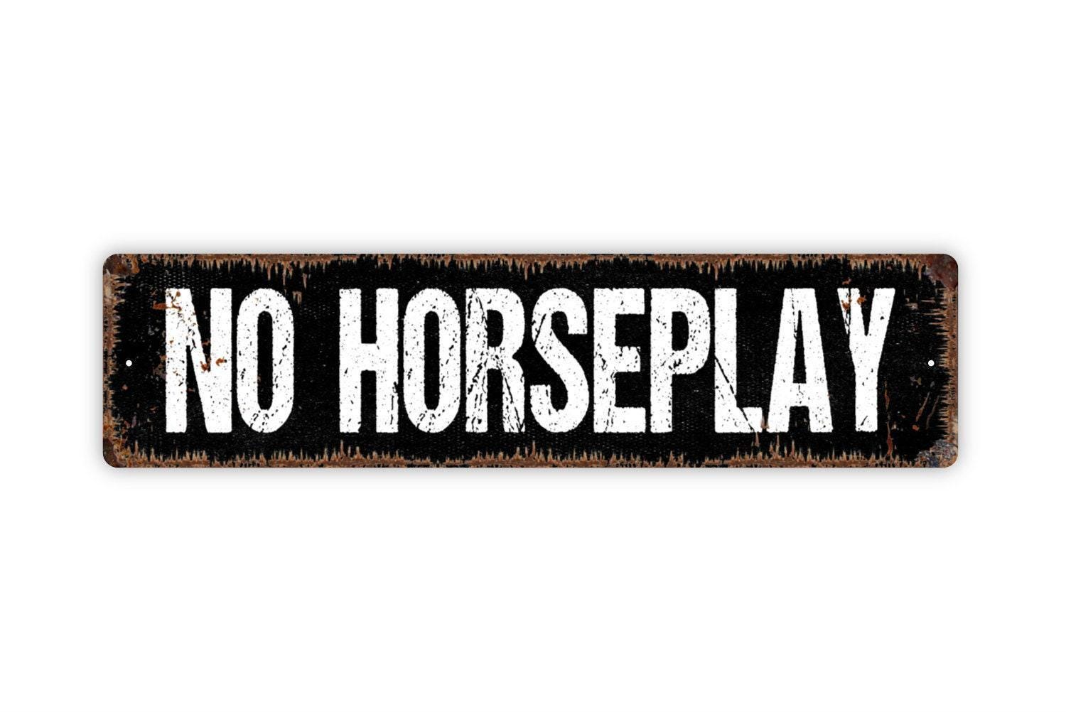 No Horseplay Sign Metal or Vinyl Sticker | Safety Warning Sign | Rustic Pool Sign | Gym Wall Decor | Workplace or Yard Caution Sticker