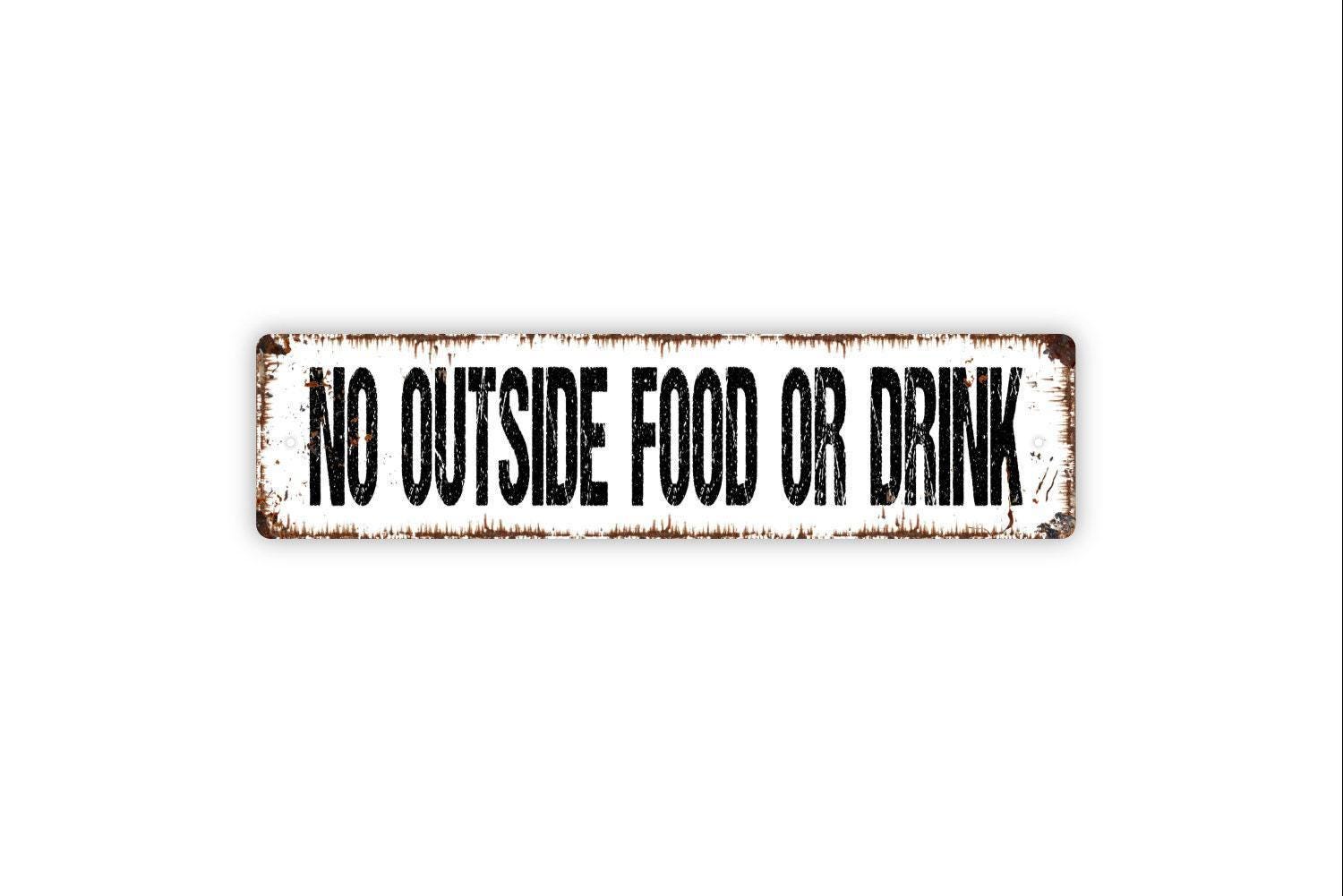No Outside Food Or Drink - Vinyl Sticker Or Street Metal Sign or Door Name Plate Plaque