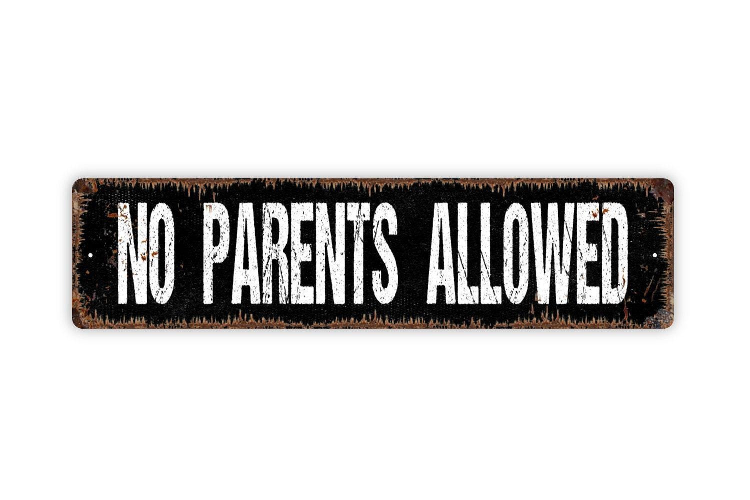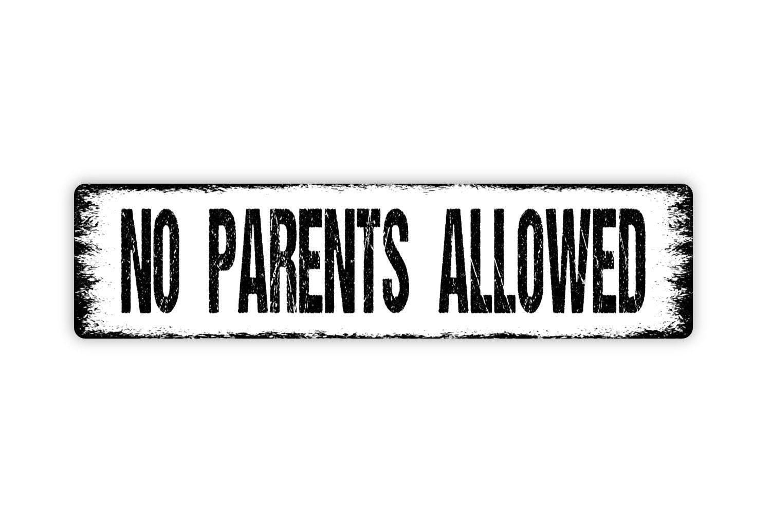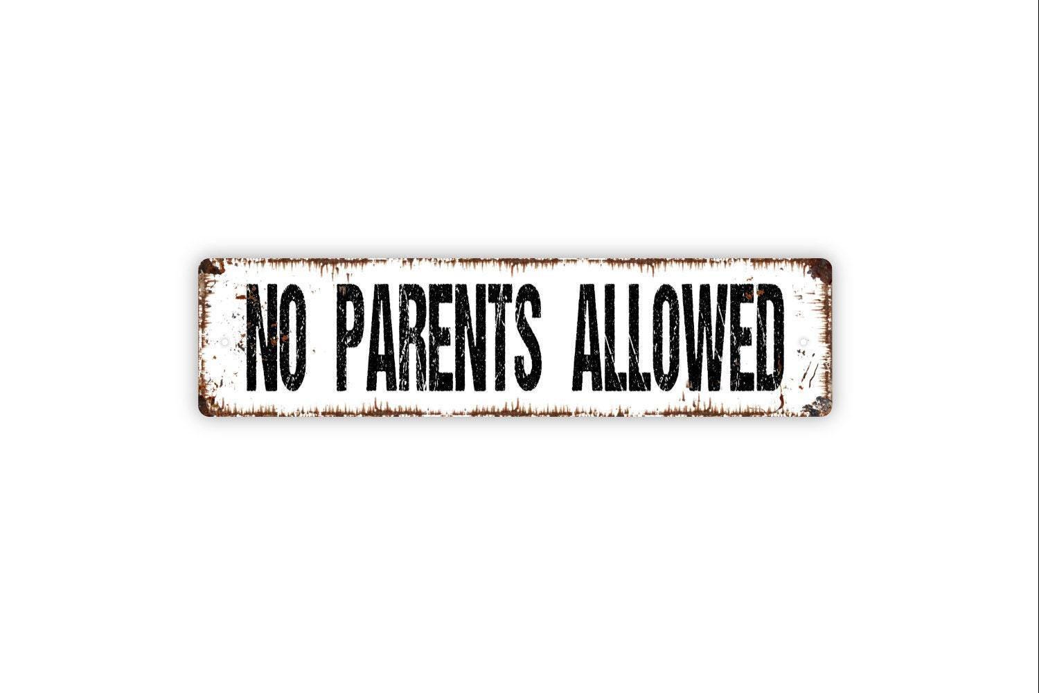 No Parents Allowed Sign - Kid Child Children Clubhouse Room Play Kid Cave Vinyl Sticker Or Street Metal Sign or Door Name Plate Plaque
