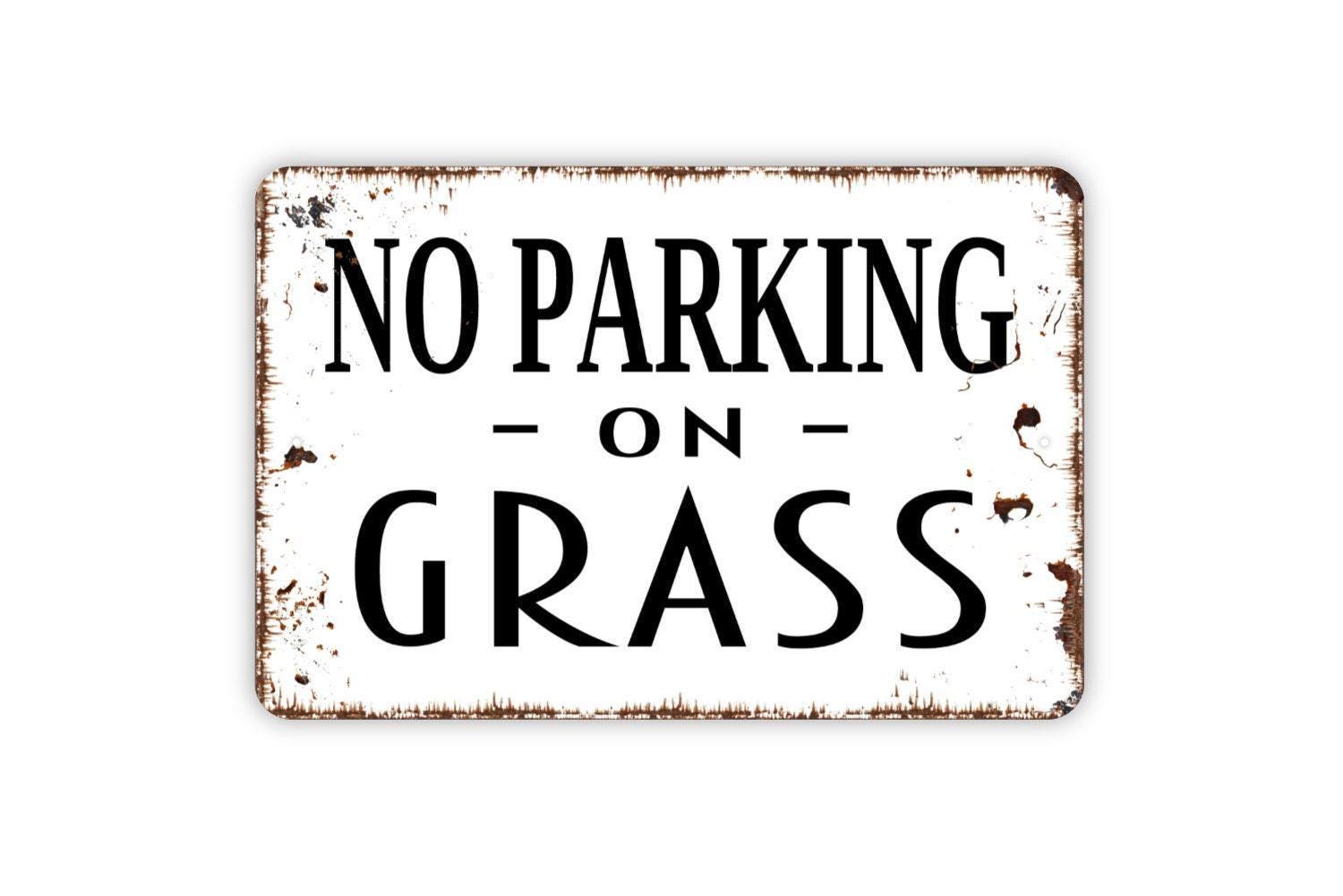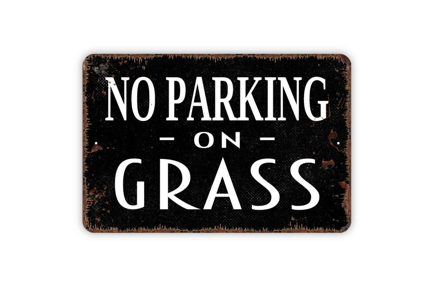 No Parking On Grass Metal Sign - Metal Sign - Stay Off Lawn Sign