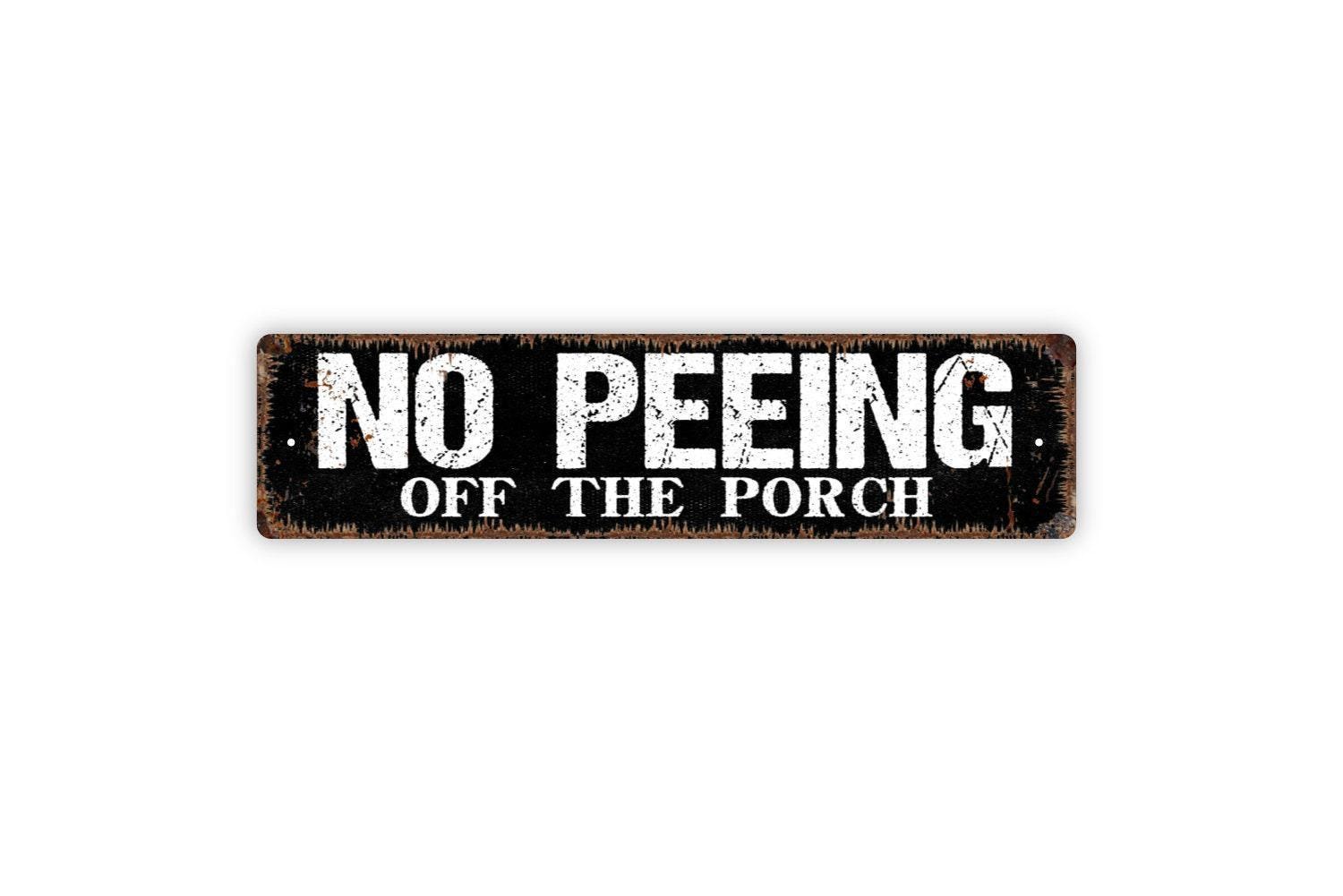 No Peeing Off The Porch Sign- Funny Pee Deck Patio Outside Vinyl Sticker Or Metal Street Sign or Door Name Plate Plaque