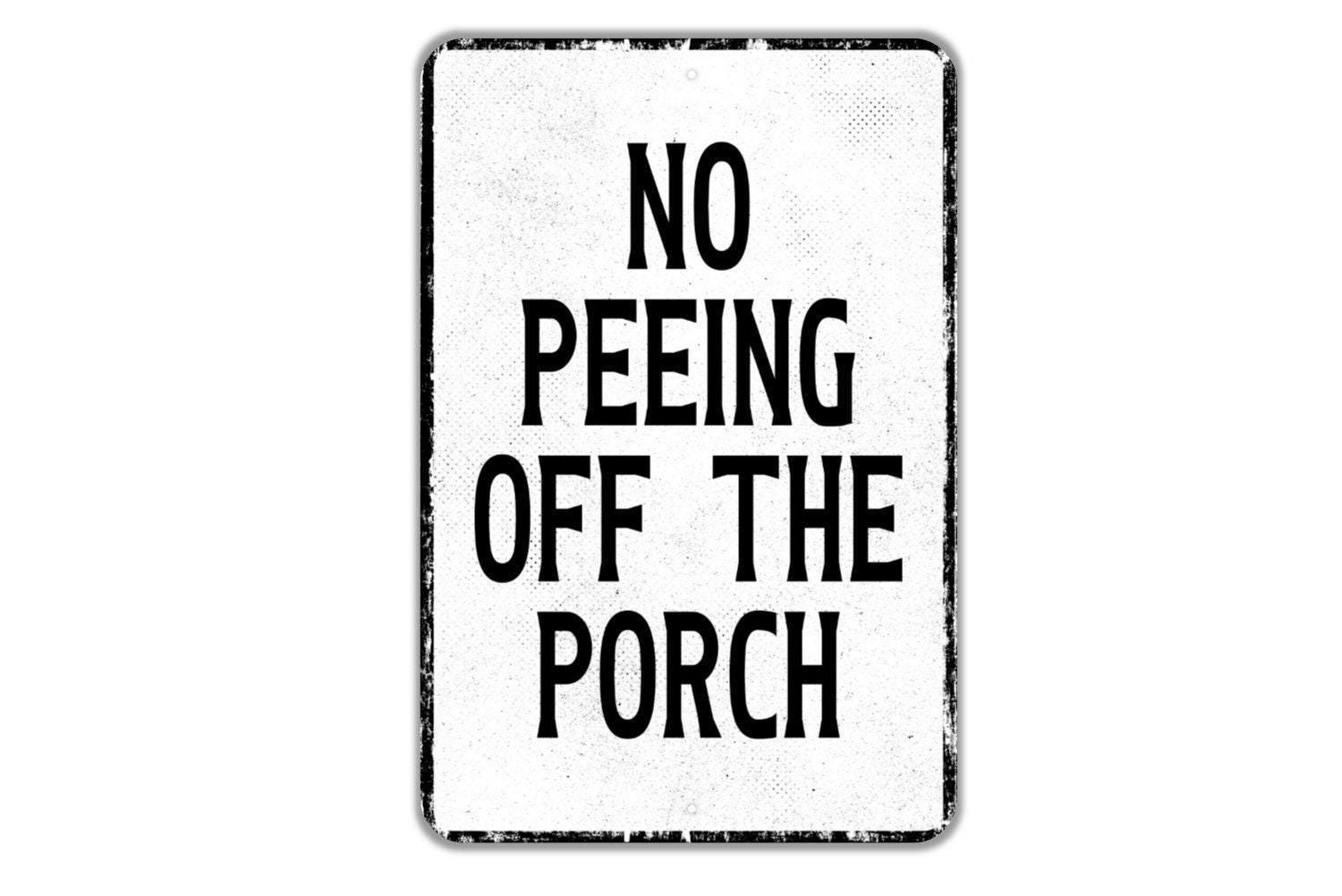 No Peeing Off The Porch Sign - Indoor Or Outdoor Metal Wall Art - Custom Sign