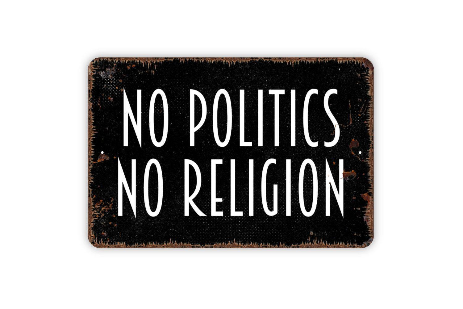 No Politics No Religion Sign – Funny Bar Wall Decor – Rustic Man Cave or Game Room Sign – Party Room Humor – Metal Sign or Vinyl Sticker
