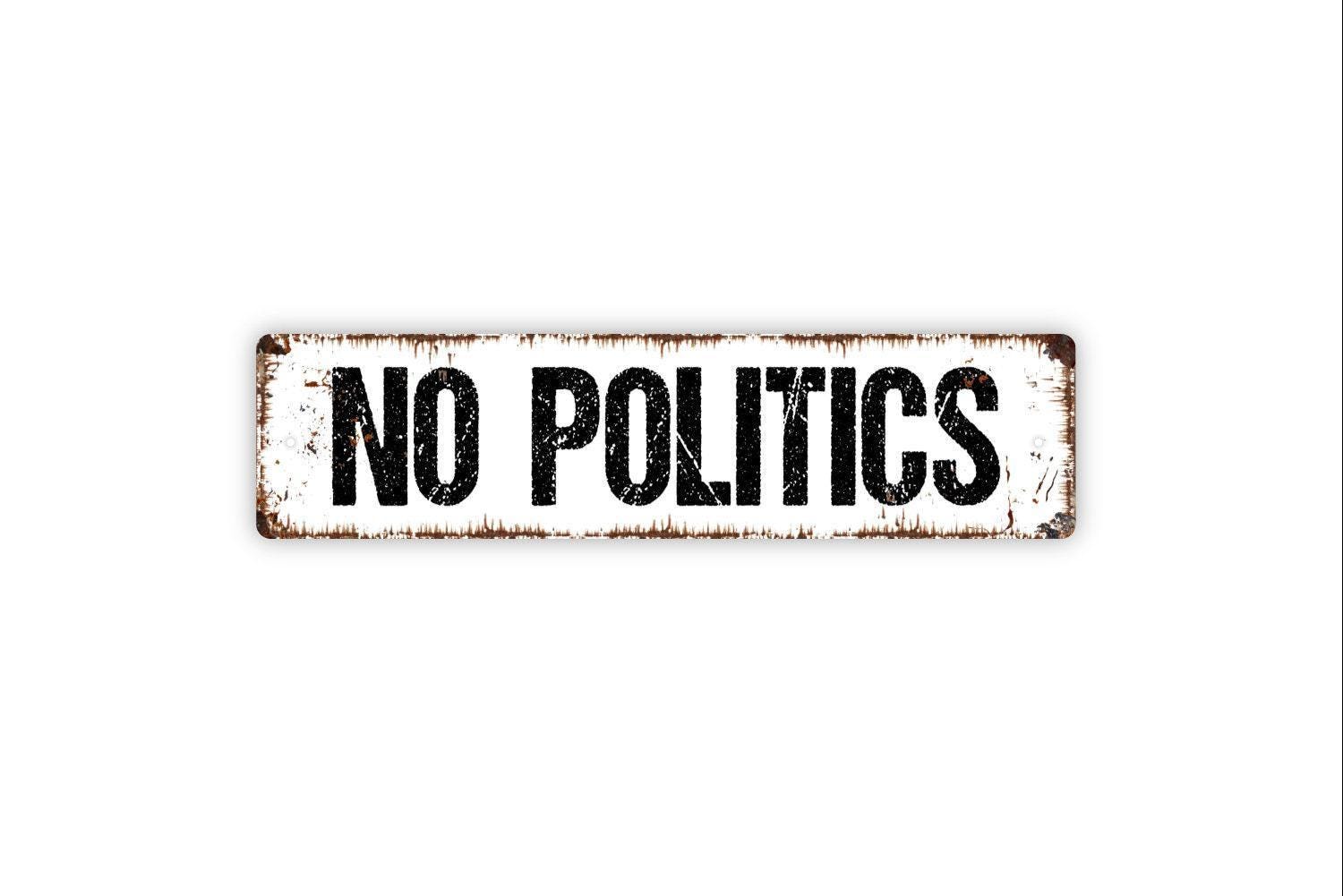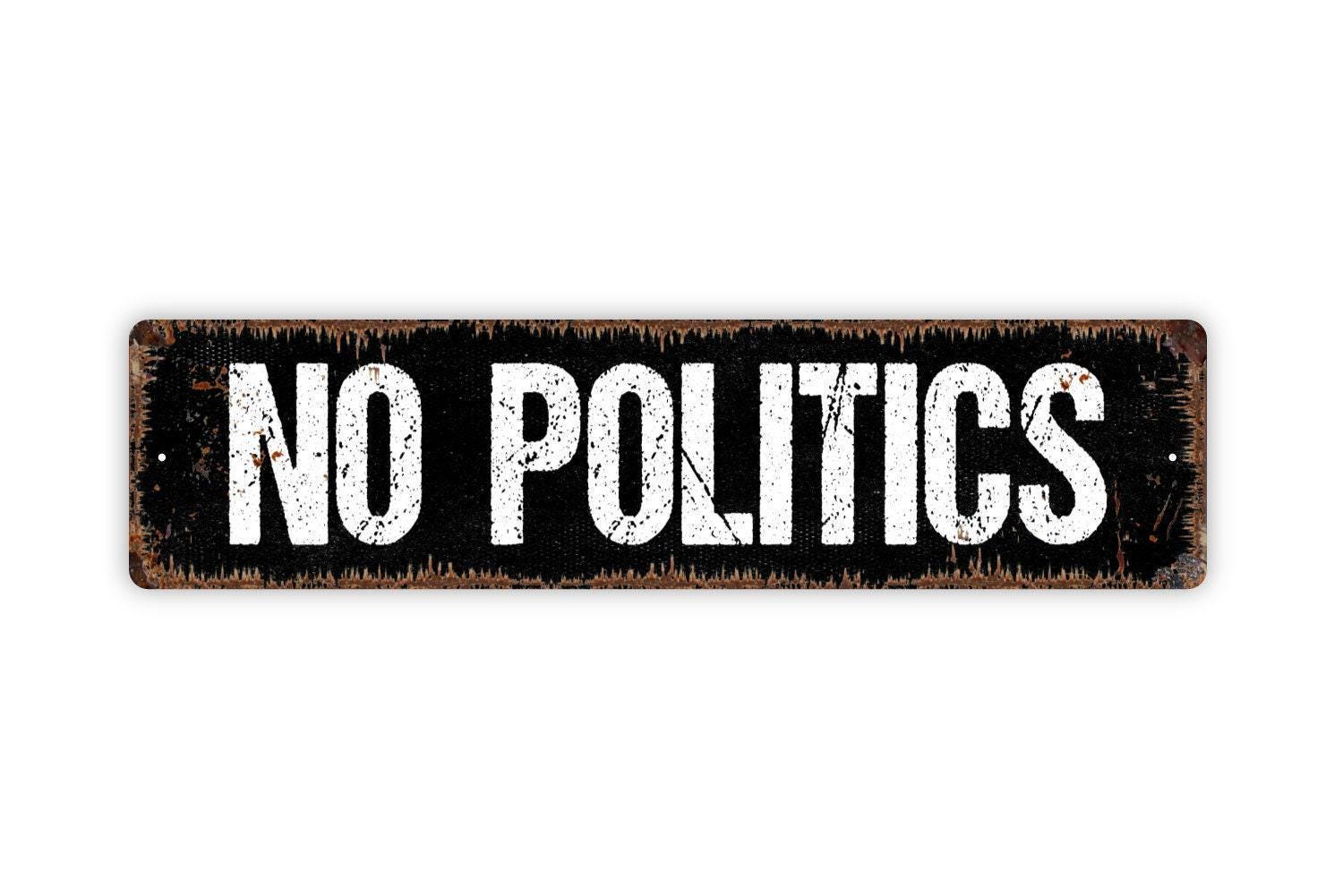 No Politics Sign - No Talking Politics No Soliciting Vinyl Sticker Or Street Metal Sign or Door Name Plate Plaque