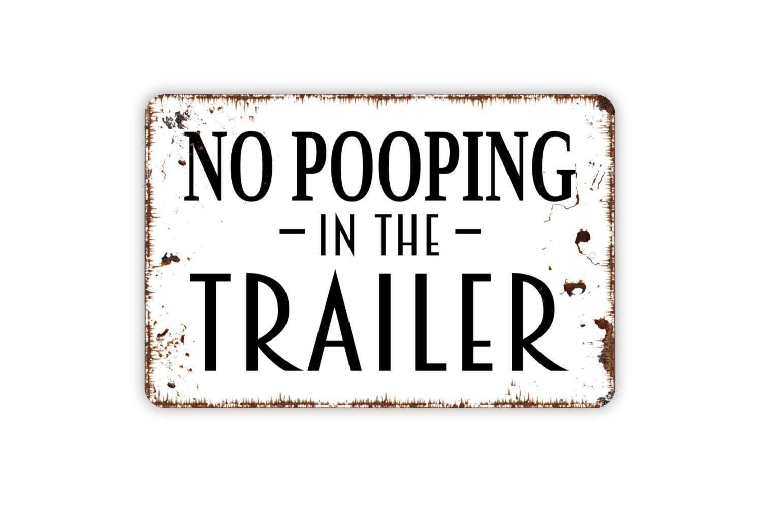 No Pooping In The Trailer Sign | Funny RV, Camper, or Camping Bathroom Wall Décor | Gag Gift Metal Sign or Vinyl Sticker for Campers