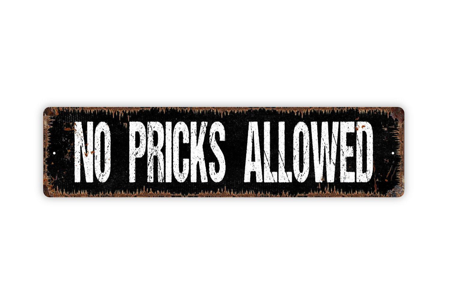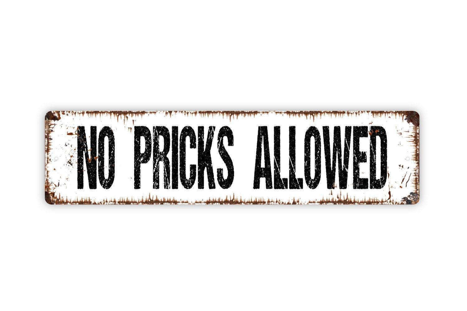 No Pricks Allowed Sign - Welcome To Our Home Funny Cactus Pun Vinyl Sticker Or Street Metal Sign or Door Name Plate Plaque
