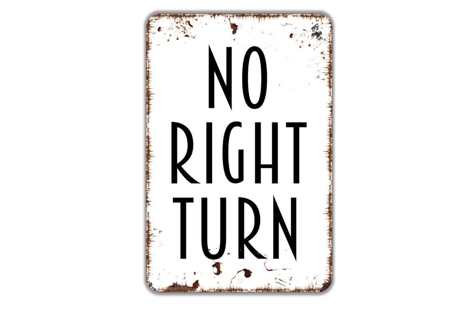 No Right Turn Sign - Instructions Metal Wall Art - Indoor or Outdoor