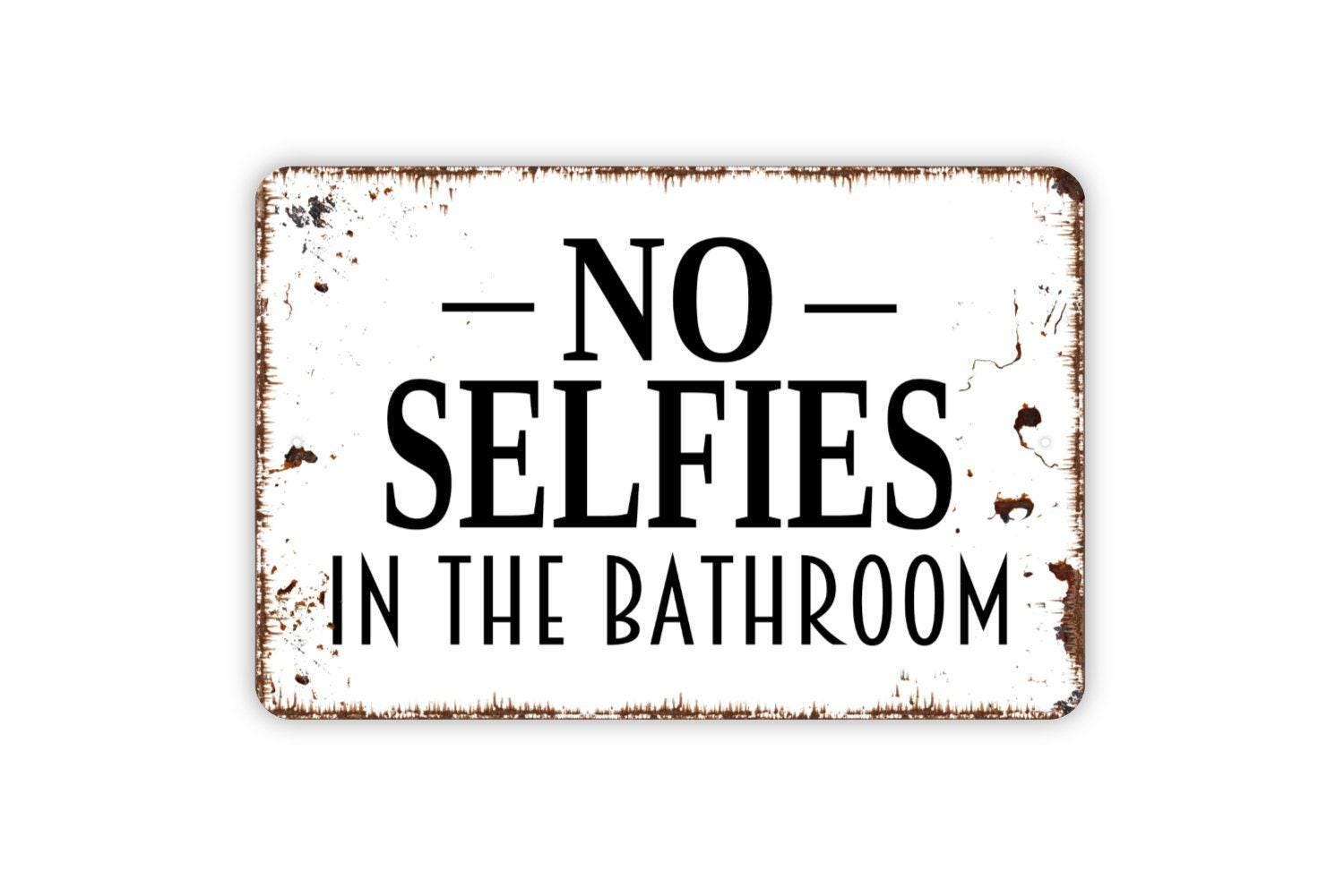 No Selfies In The Bathroom Sign, Funny Bathroom Farmhouse Metal Sign, Contemporary Modern Wall Aluminum Tin Metal Sign