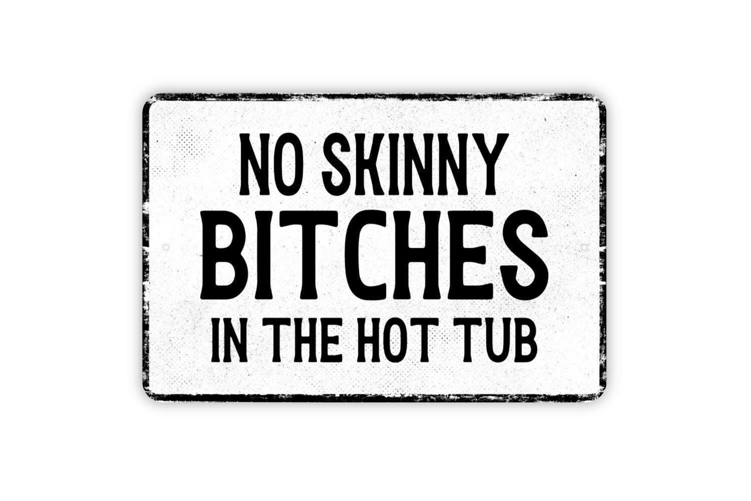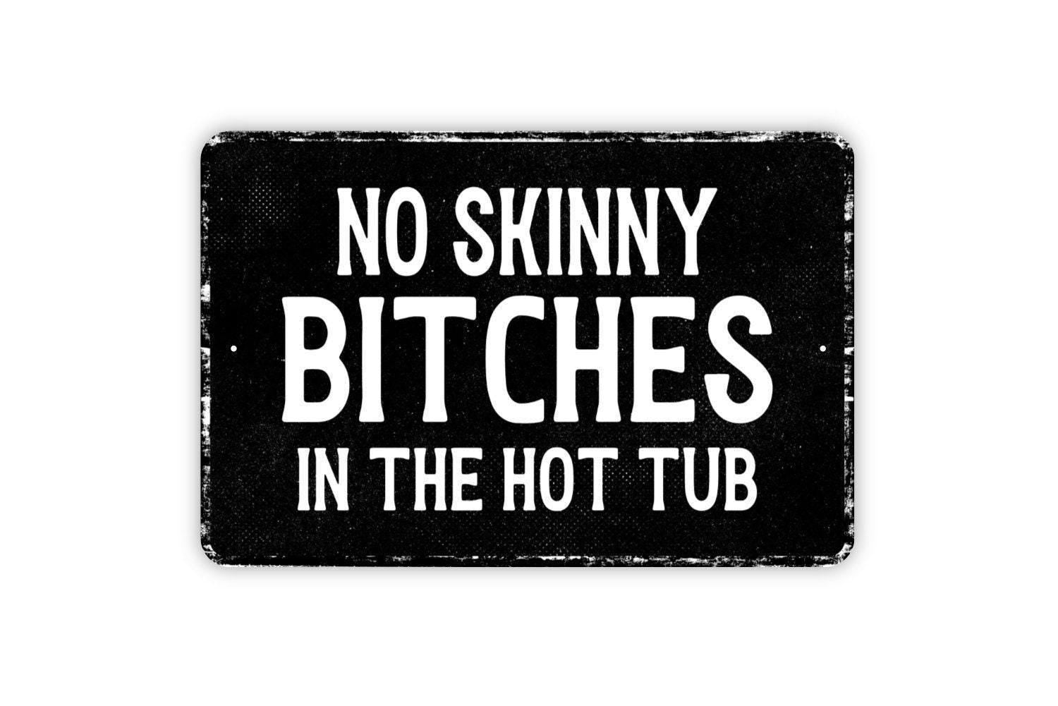 No Skinny Bitches In The Hot Tub Sign | Funny Hot Tub Metal Sign or Vinyl Sticker | Pool, Spa, Backyard, Party, Bar, Rustic Humor Wall Decor