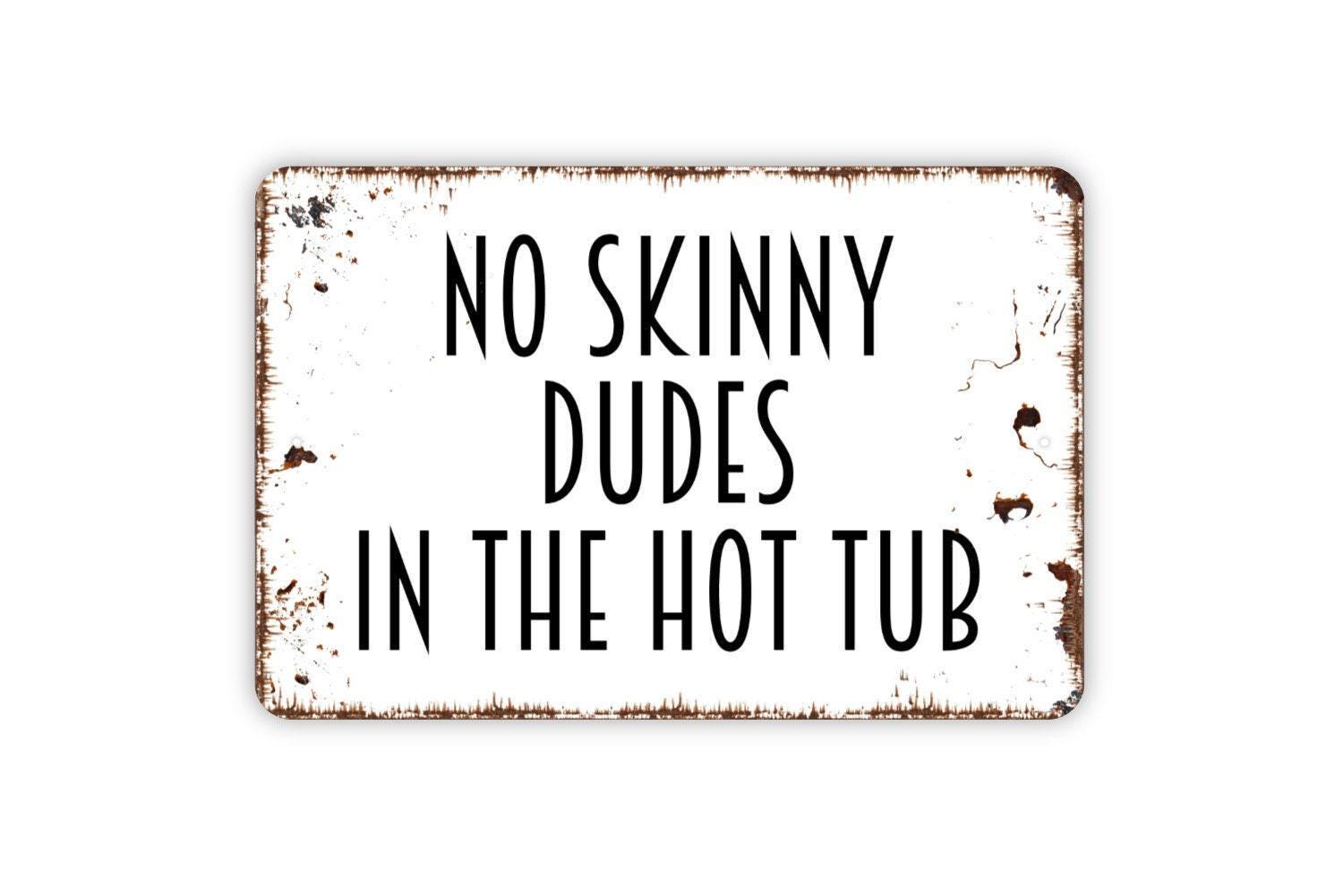 No Skinny Dudes in the Hot Tub Sign - Metal Indoor or Outdoor Wall Art