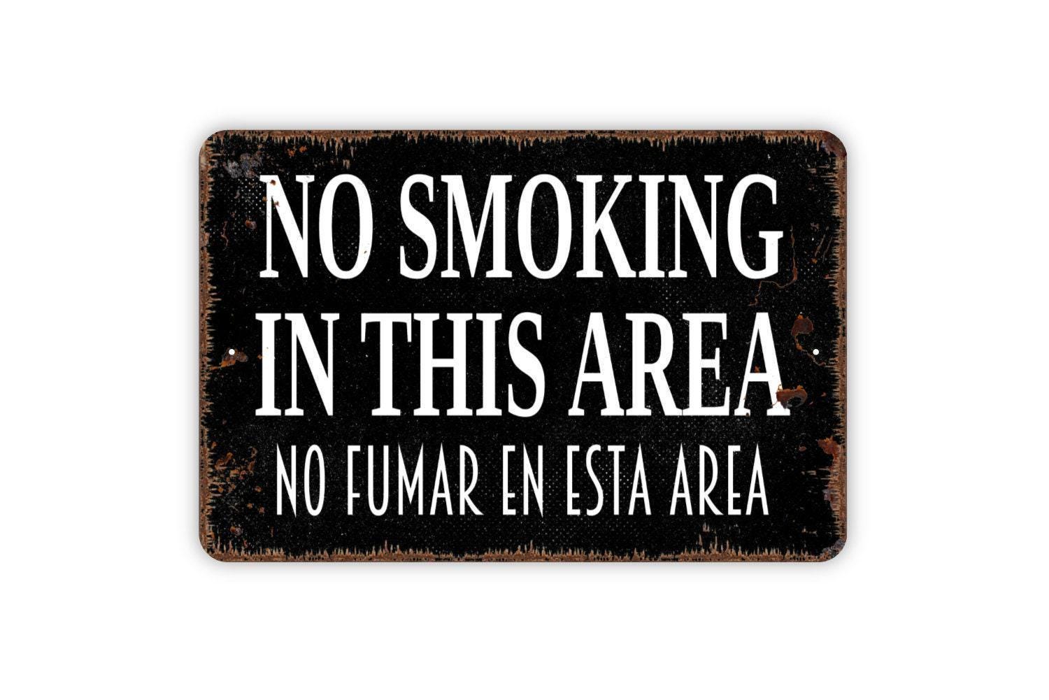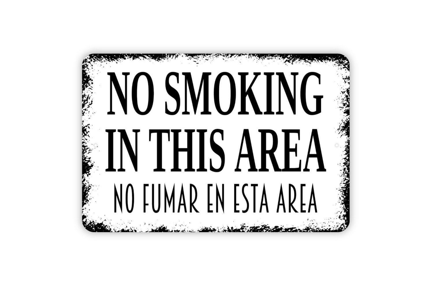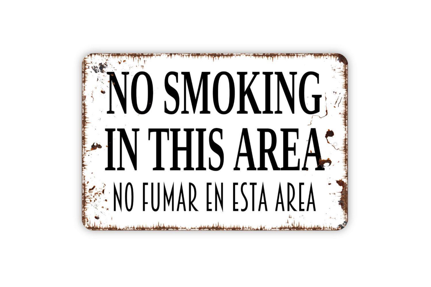 No Smoking In This Area No Fumar En Esta Area Sign - English Spanish Metal Indoor or Outdoor Wall Art Metal Sign