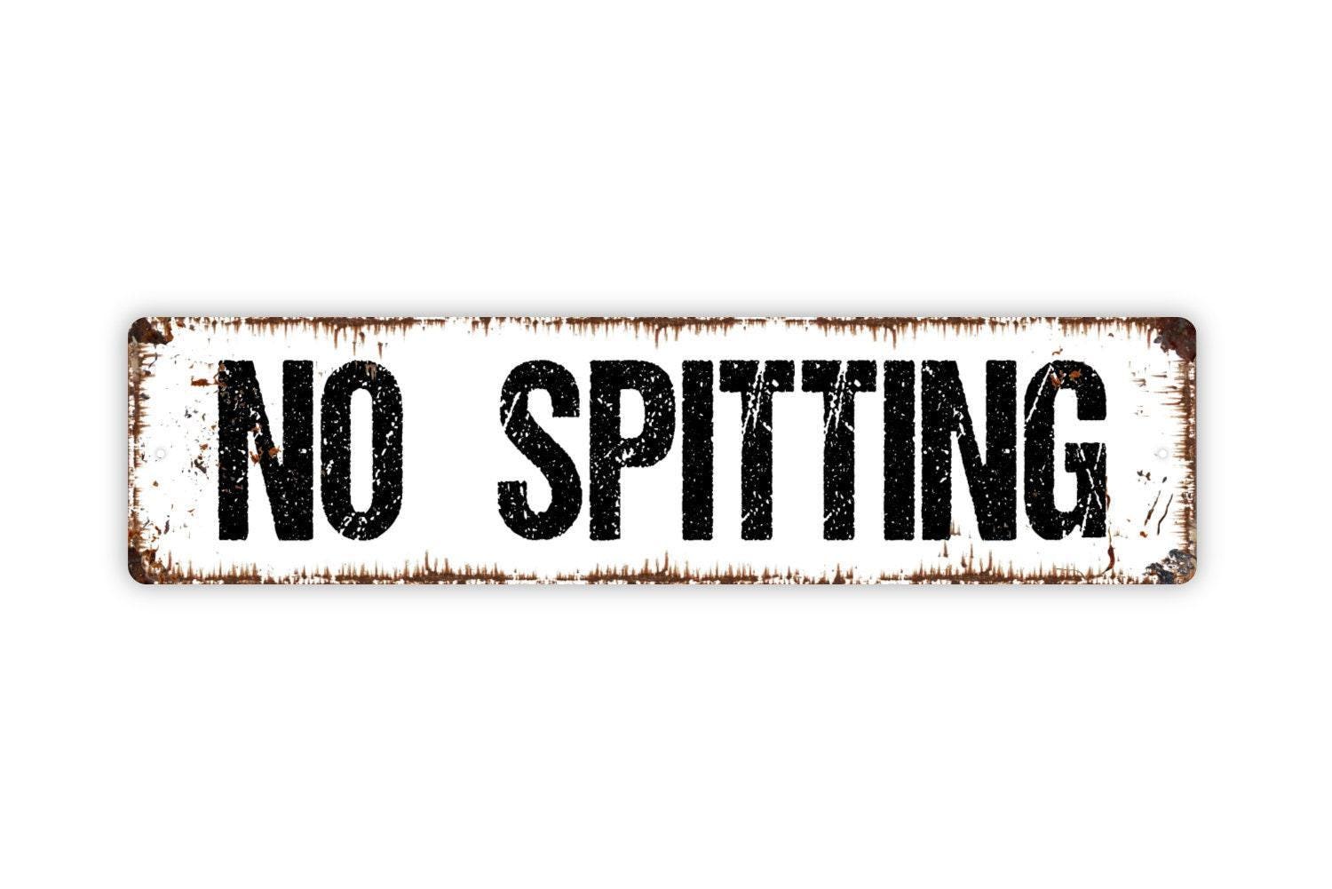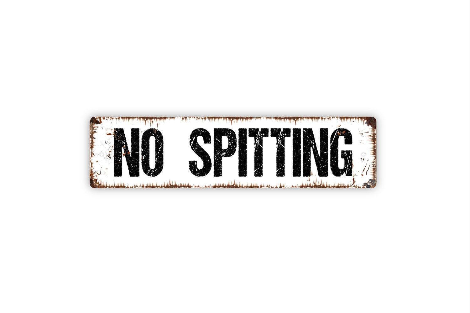 No Spitting Sign, Custom Metal Sign, Vinyl Sticker Or Street Sign or Door Name Plate Plaque